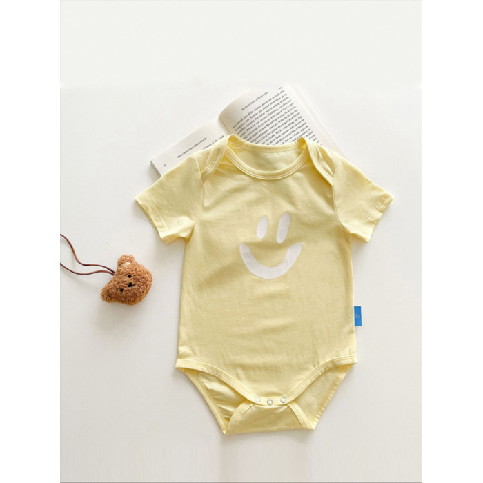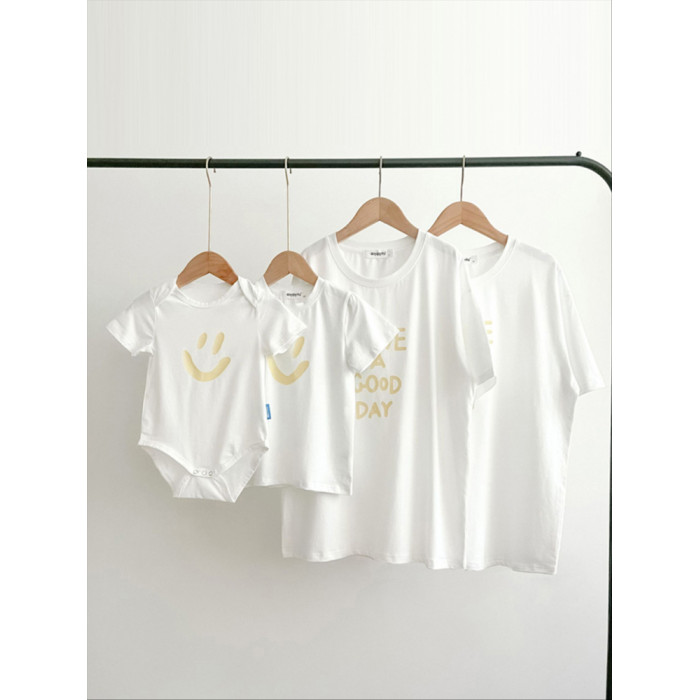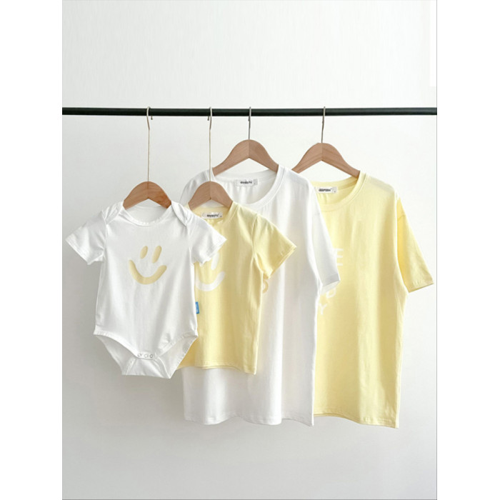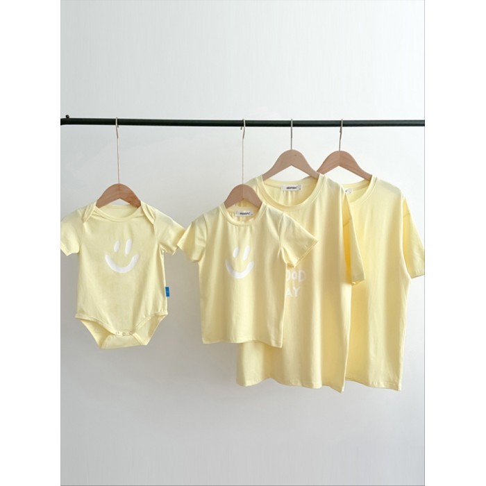 笑臉親子裝夏裝2025新款潮黃色一家三口四口嬰兒母子裝母女裝短袖
