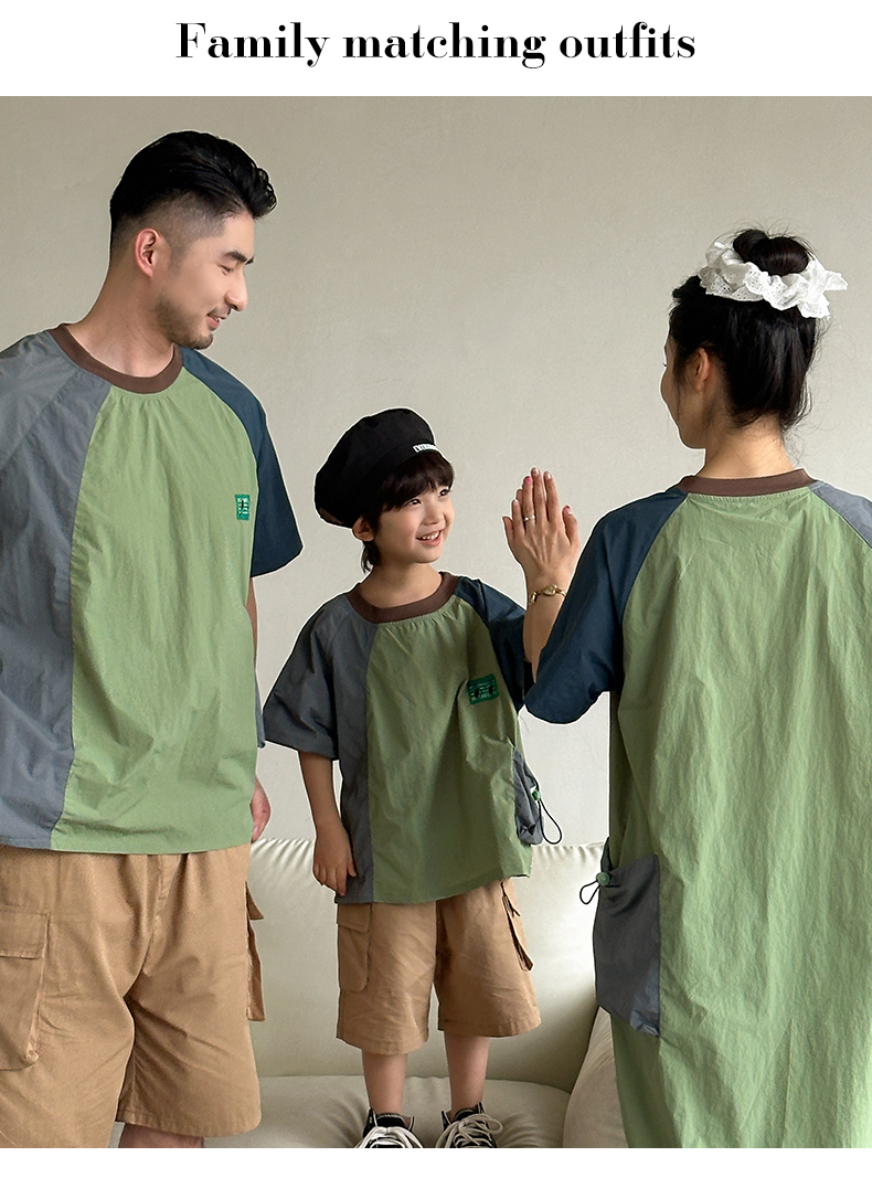 親子裝短袖2025夏季韓版一家三四口拼色休閒Tt恤衫出遊母女裝裙子
