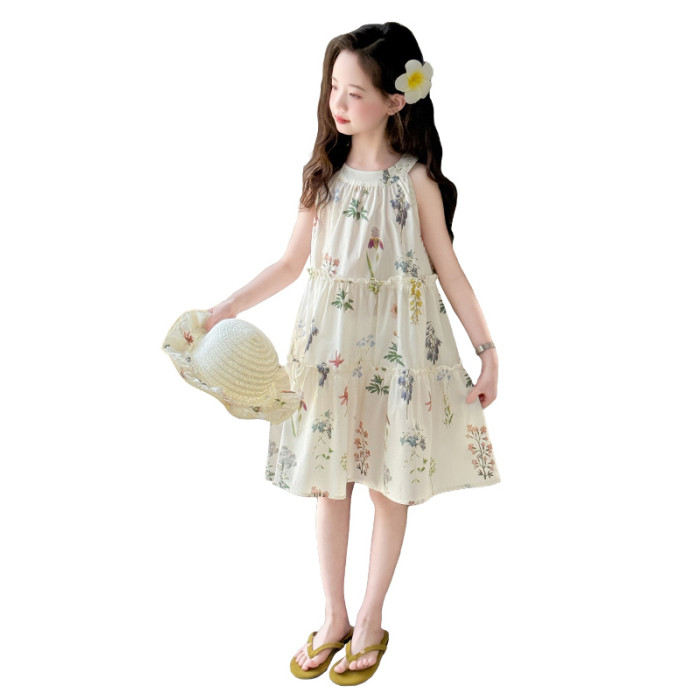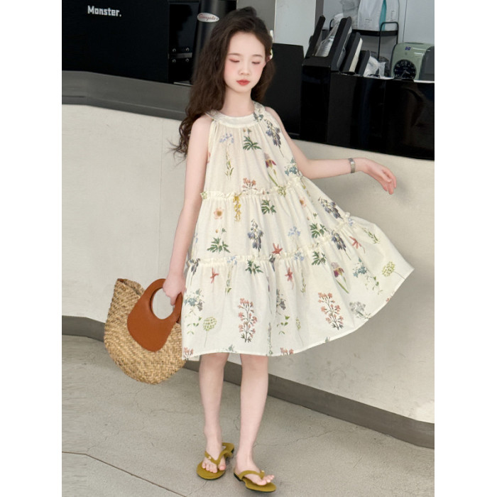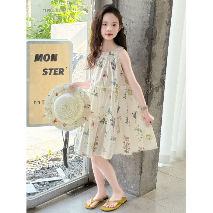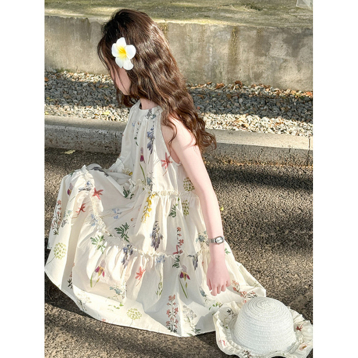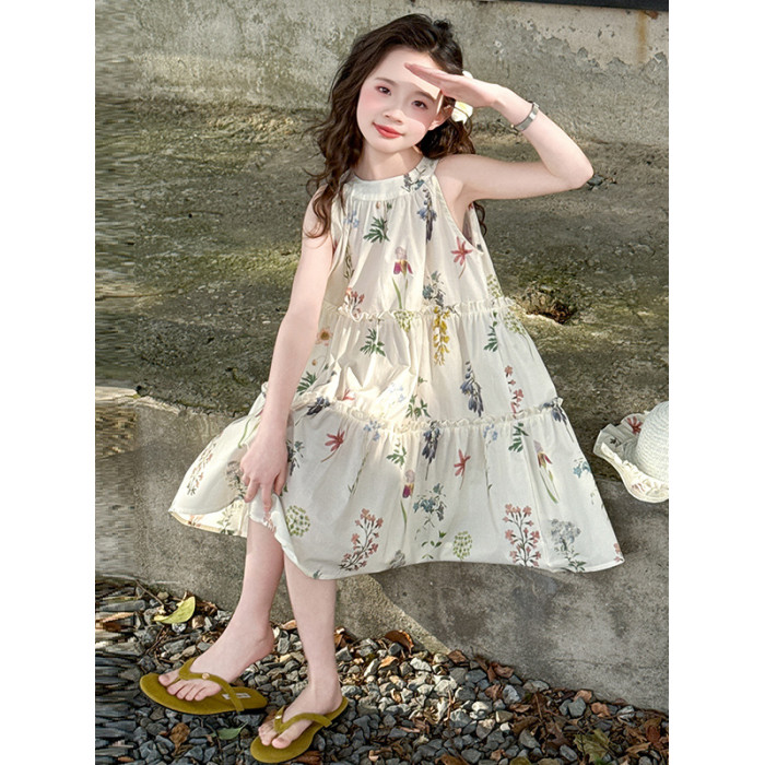 女童連衣裙夏季2025新款大兒童洋氣碎花背心裙女孩度假風沙灘裙子