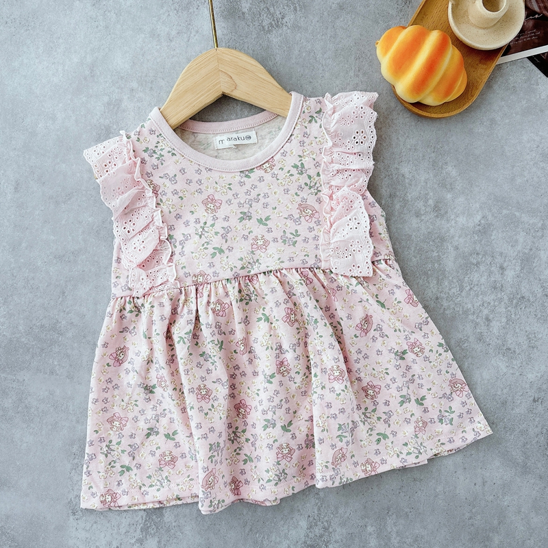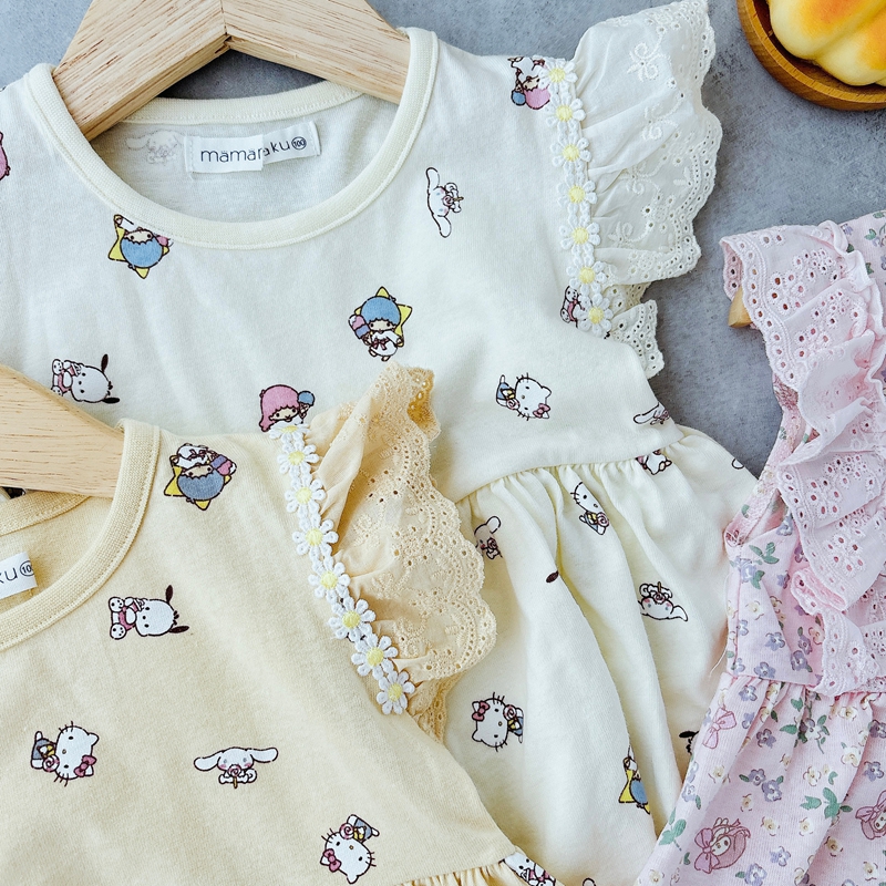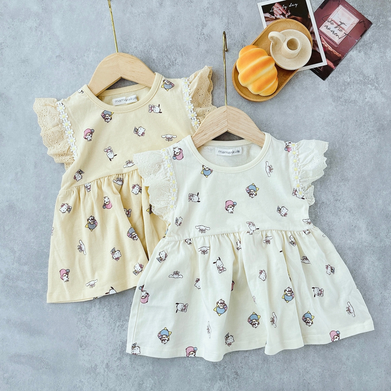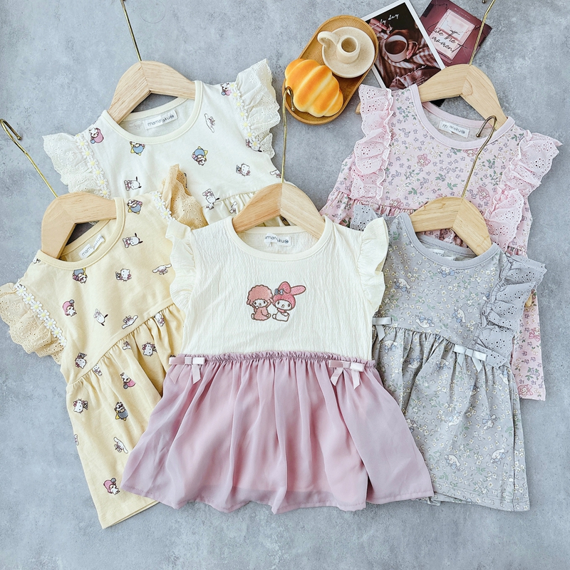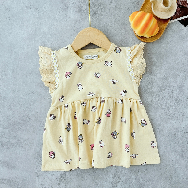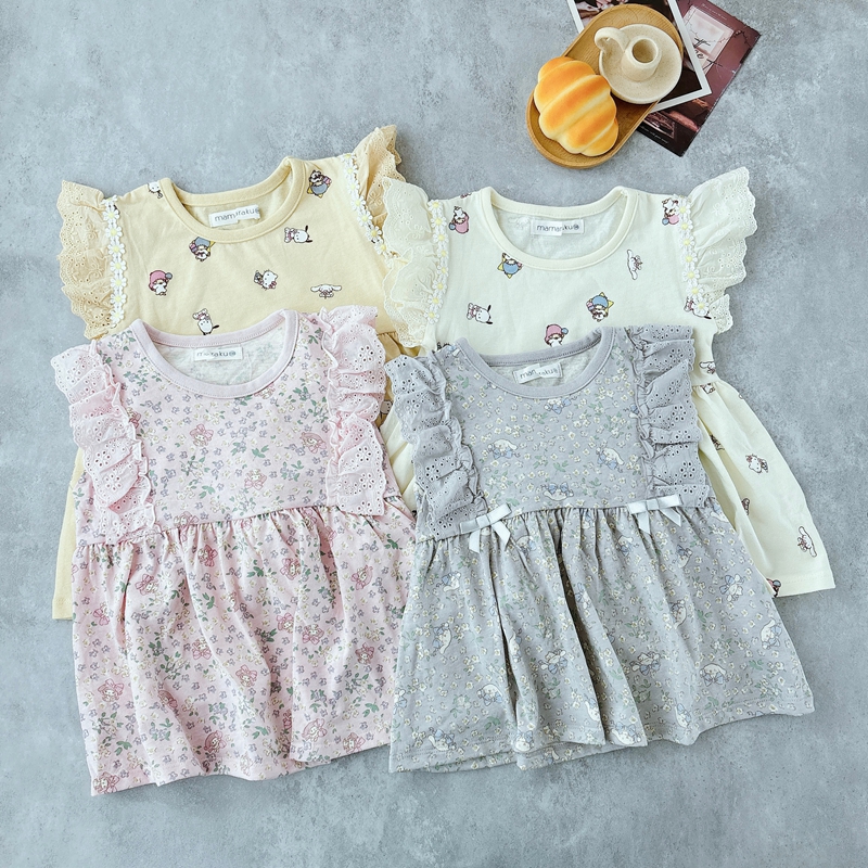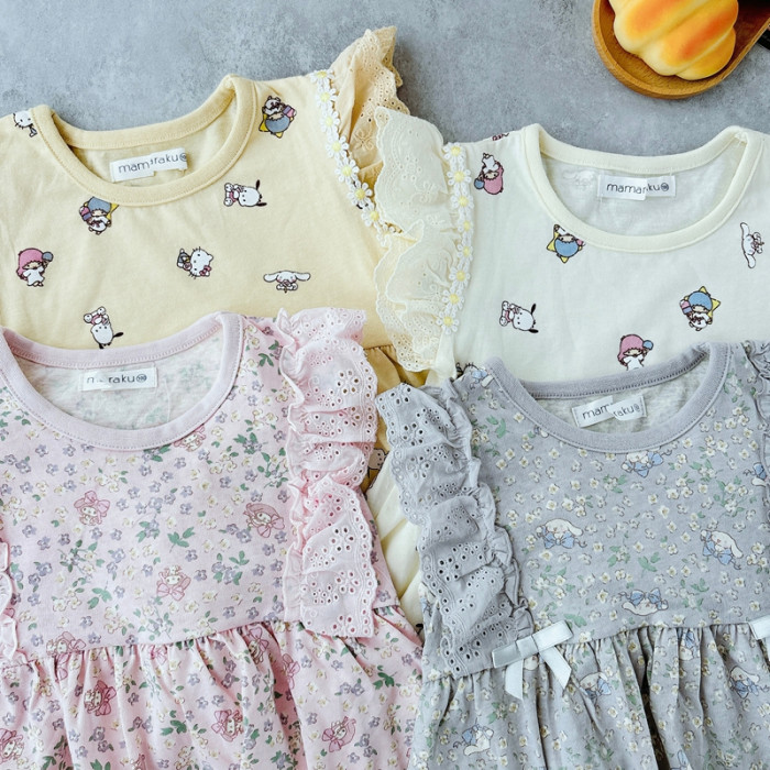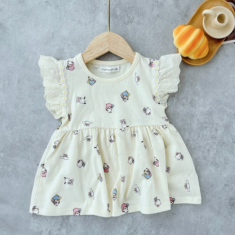 日單原單媽媽樂純棉短袖女童裙式上衣kt娃娃衫薄舒適女寶可愛T恤