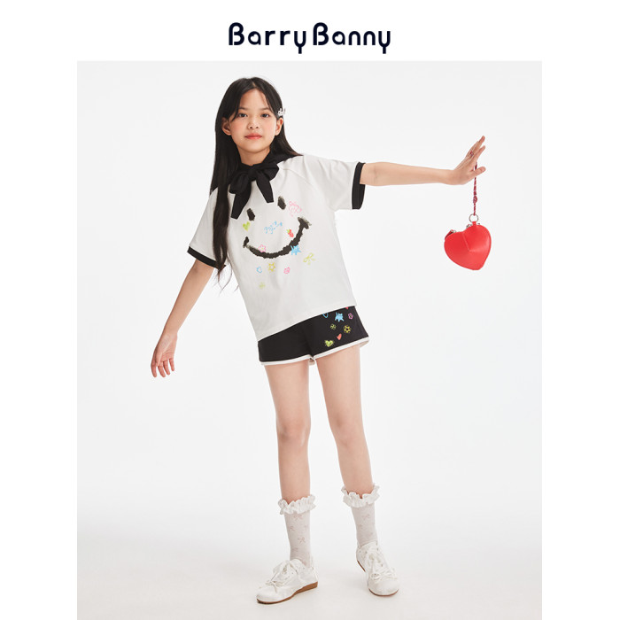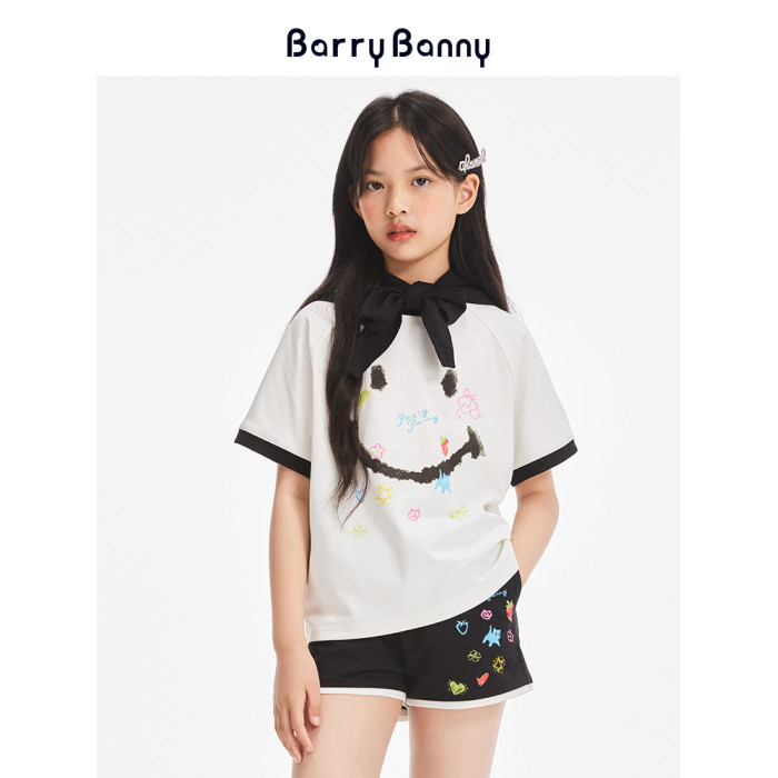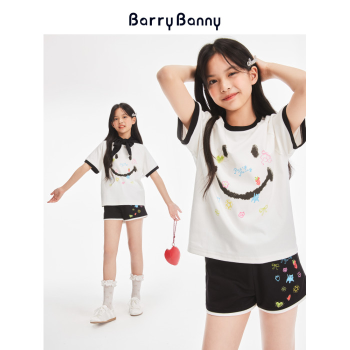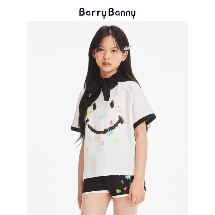 BarryBanny女童笑臉T恤2025夏季新款兒童洋氣女孩上衣圓領短袖