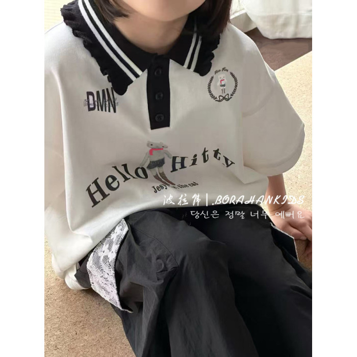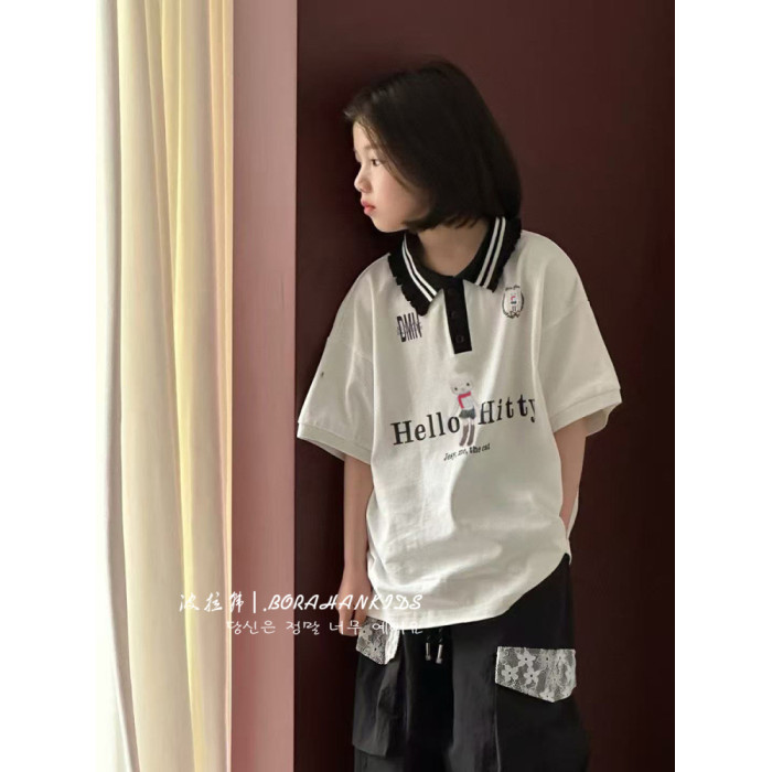 波拉韓女童夏季短袖T恤2025新款兒童翻領POLO衫女孩洋氣休閒上衣