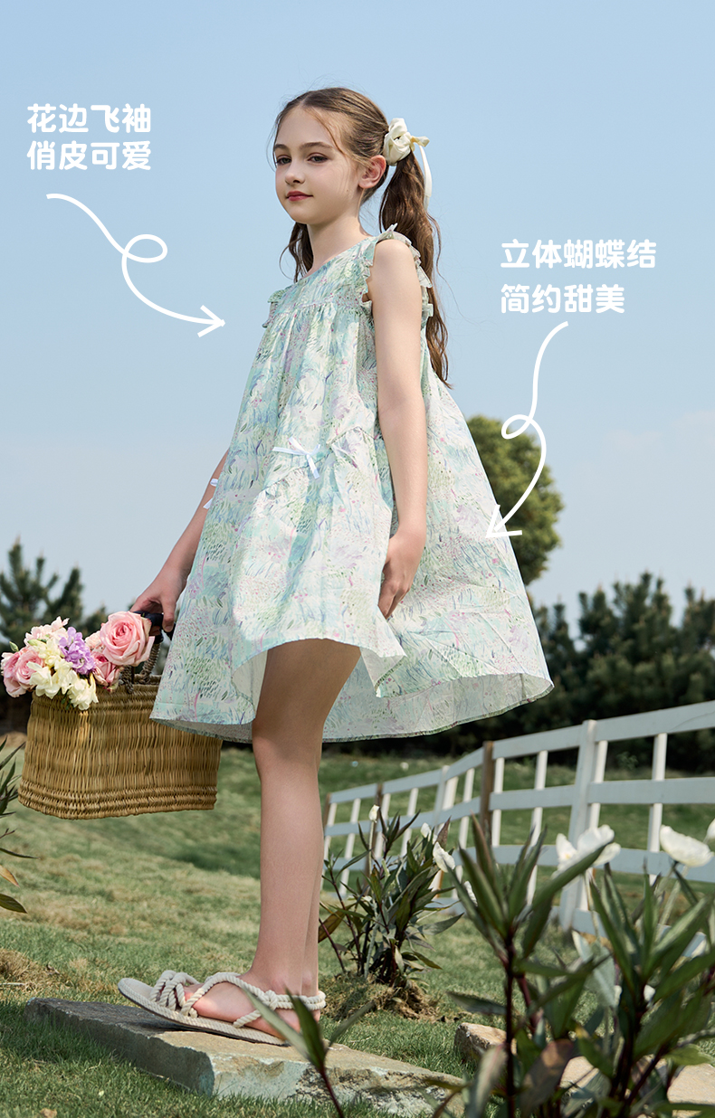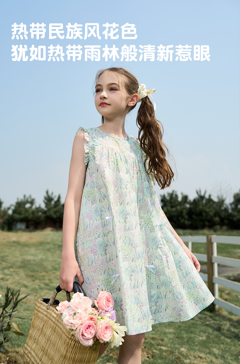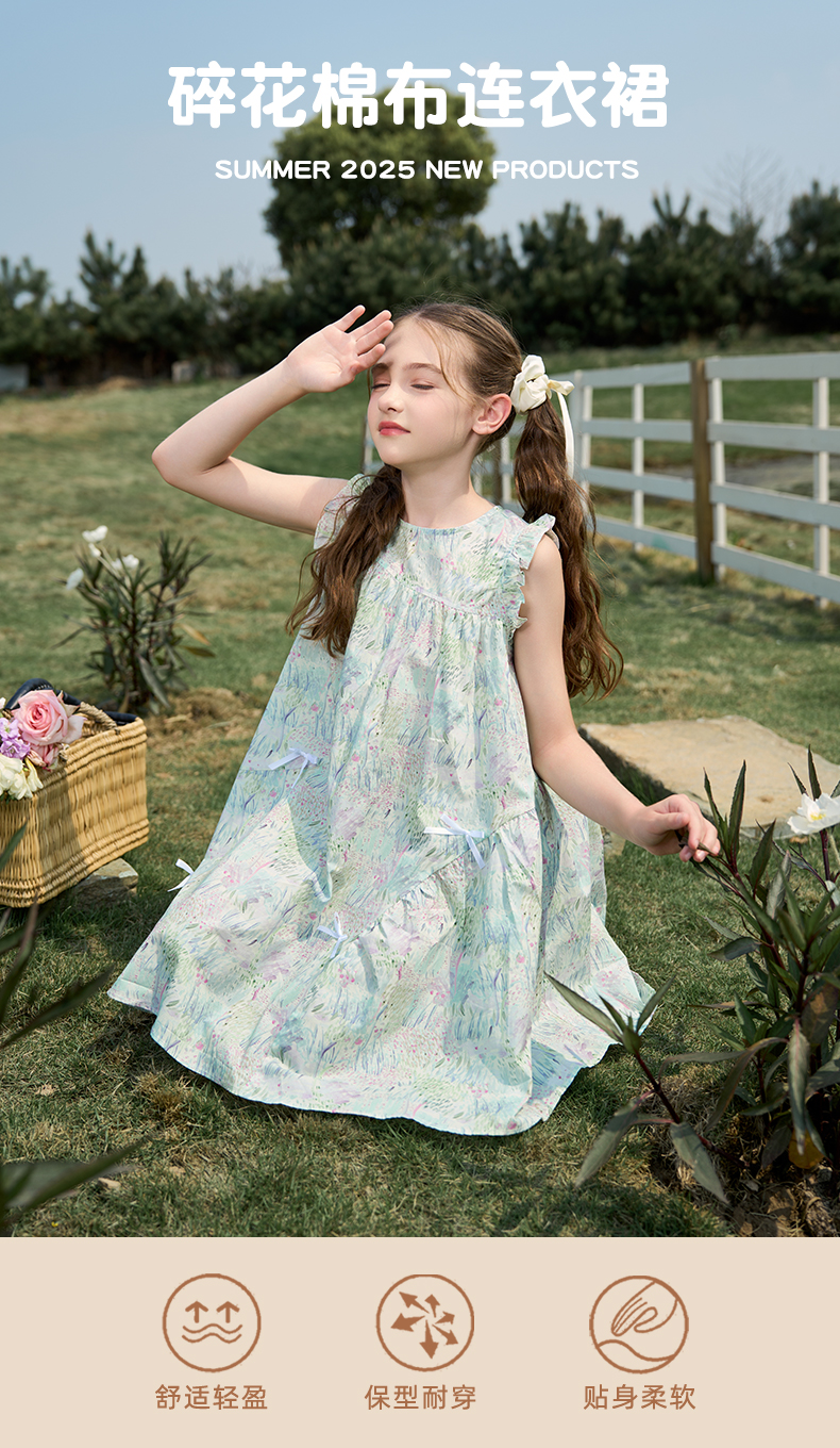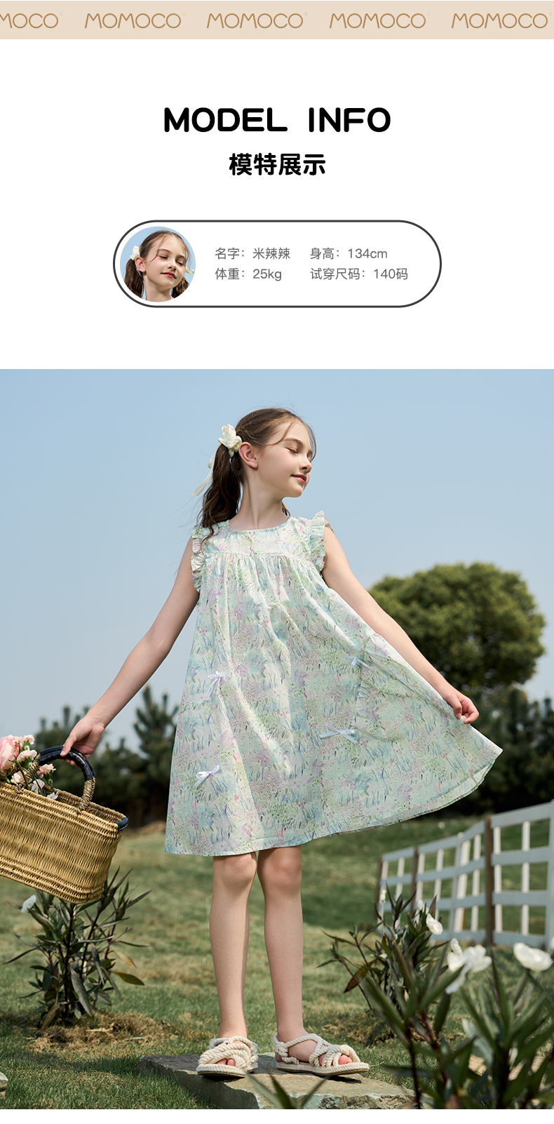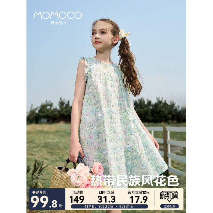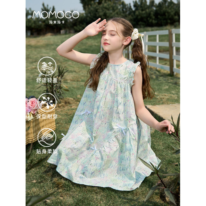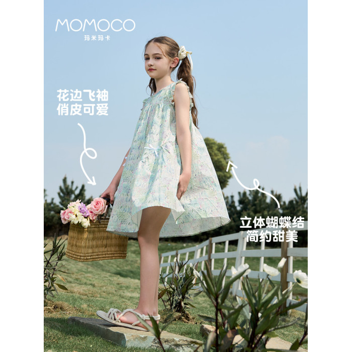 MOMOCO/瑪米瑪卡女童碎花連衣裙2025新款夏季中大童洋氣清新裙子