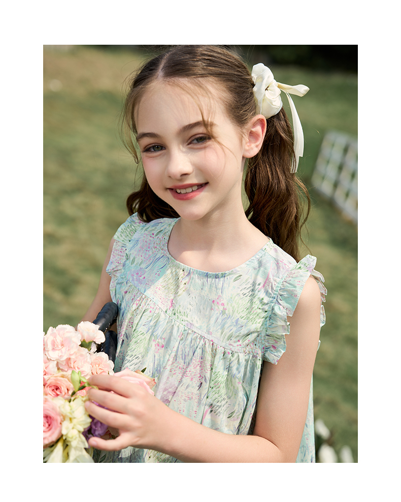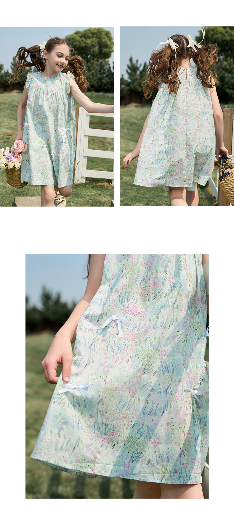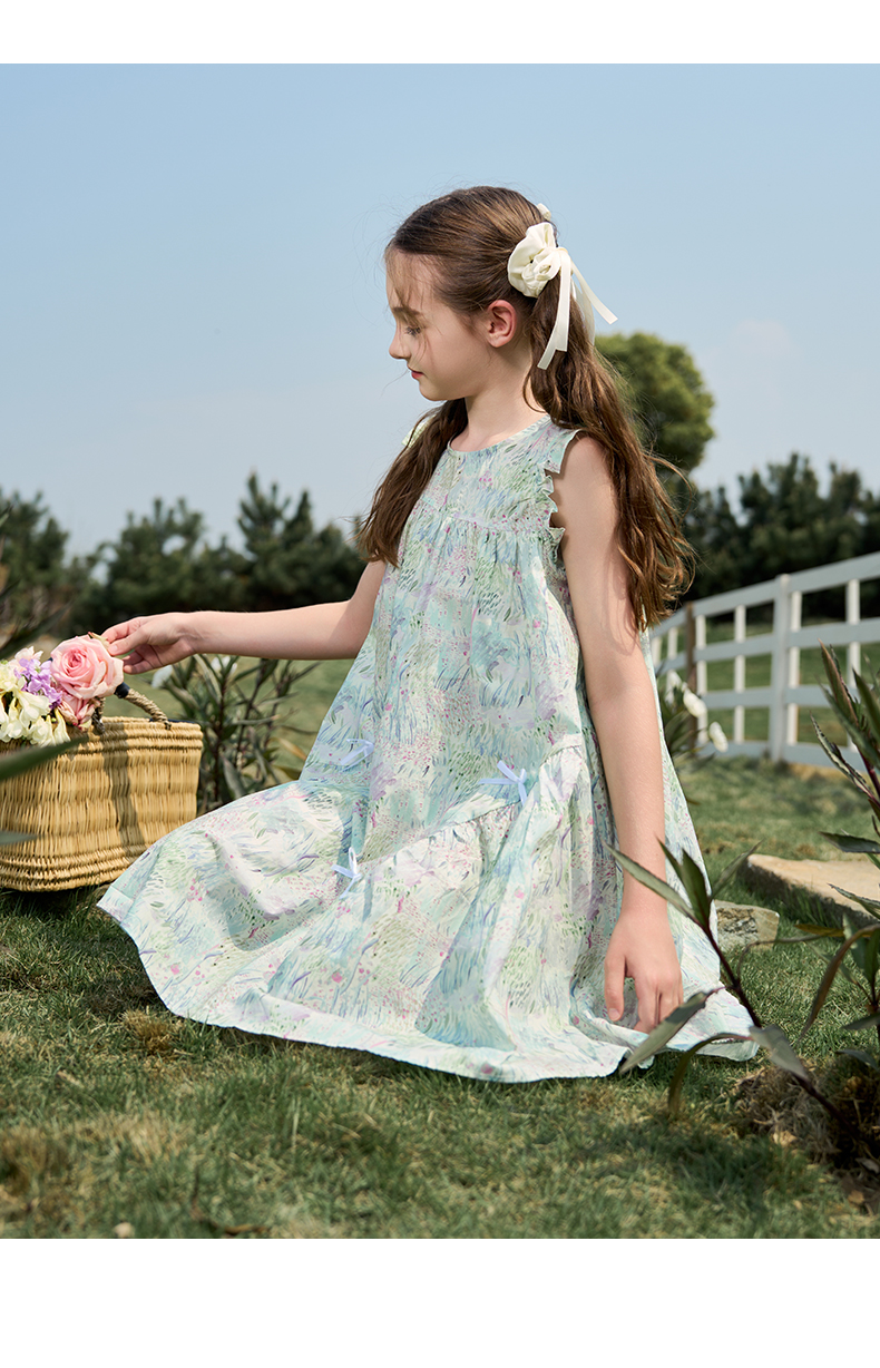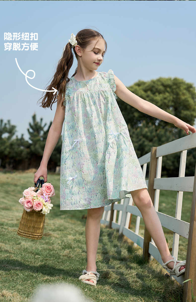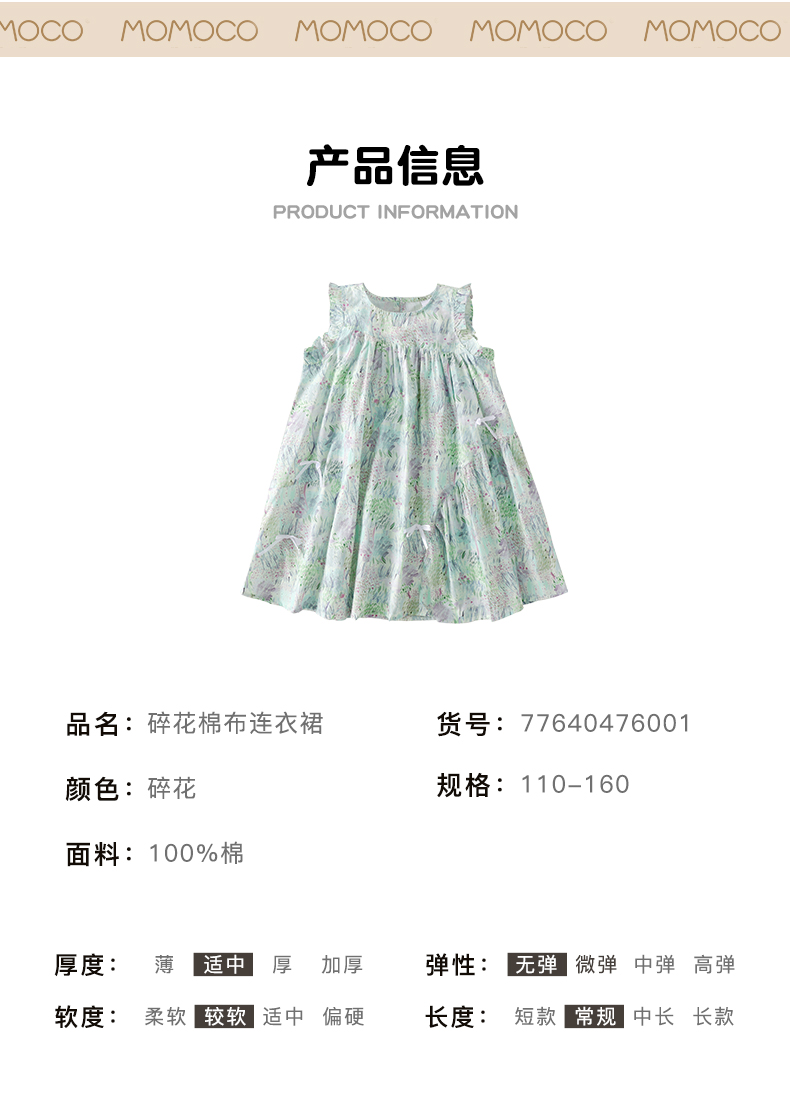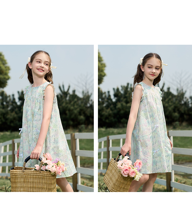 MOMOCO/瑪米瑪卡女童碎花連衣裙2025新款夏季中大童洋氣清新裙子
