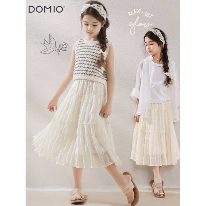 DOMIO女童半身裙2025夏季新款兒童裙子女孩公主裙洋氣中長款裙子