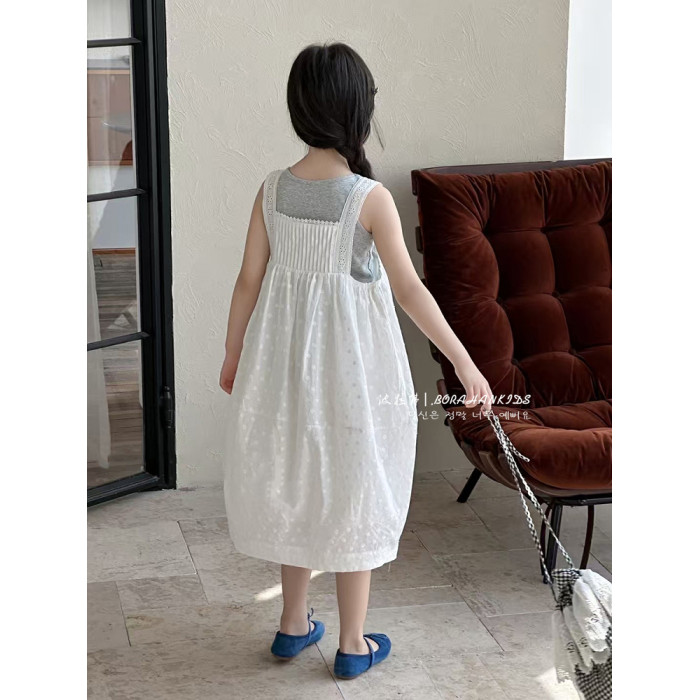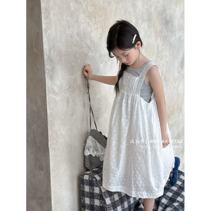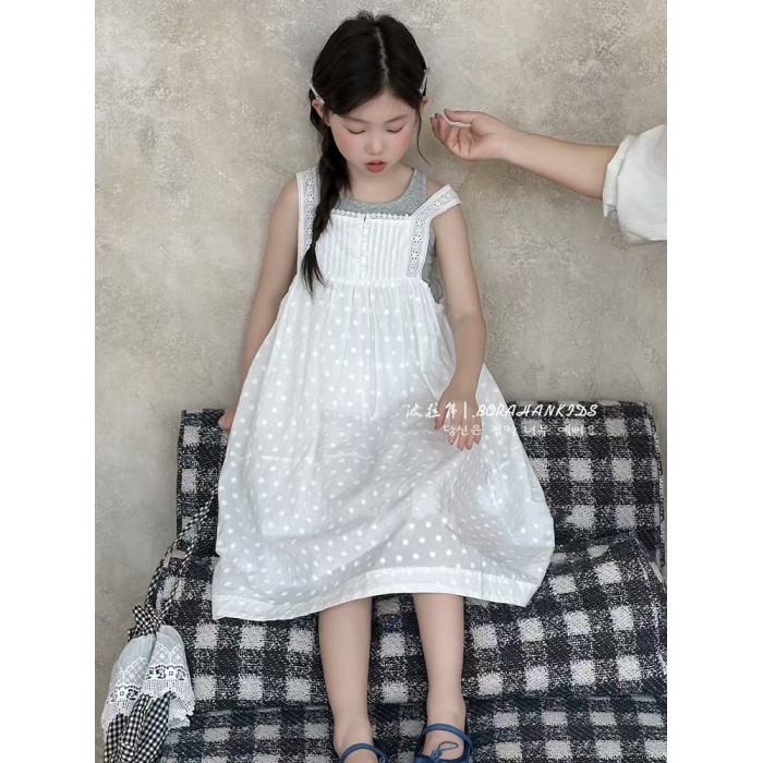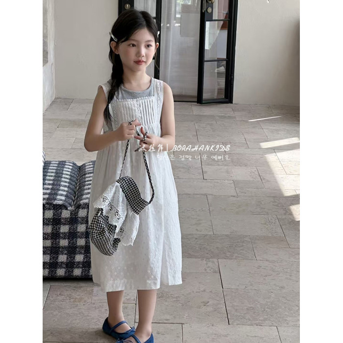 波拉韓女童夏季連衣裙套裝2025新款背心兒童裙子中大童時髦兩件套