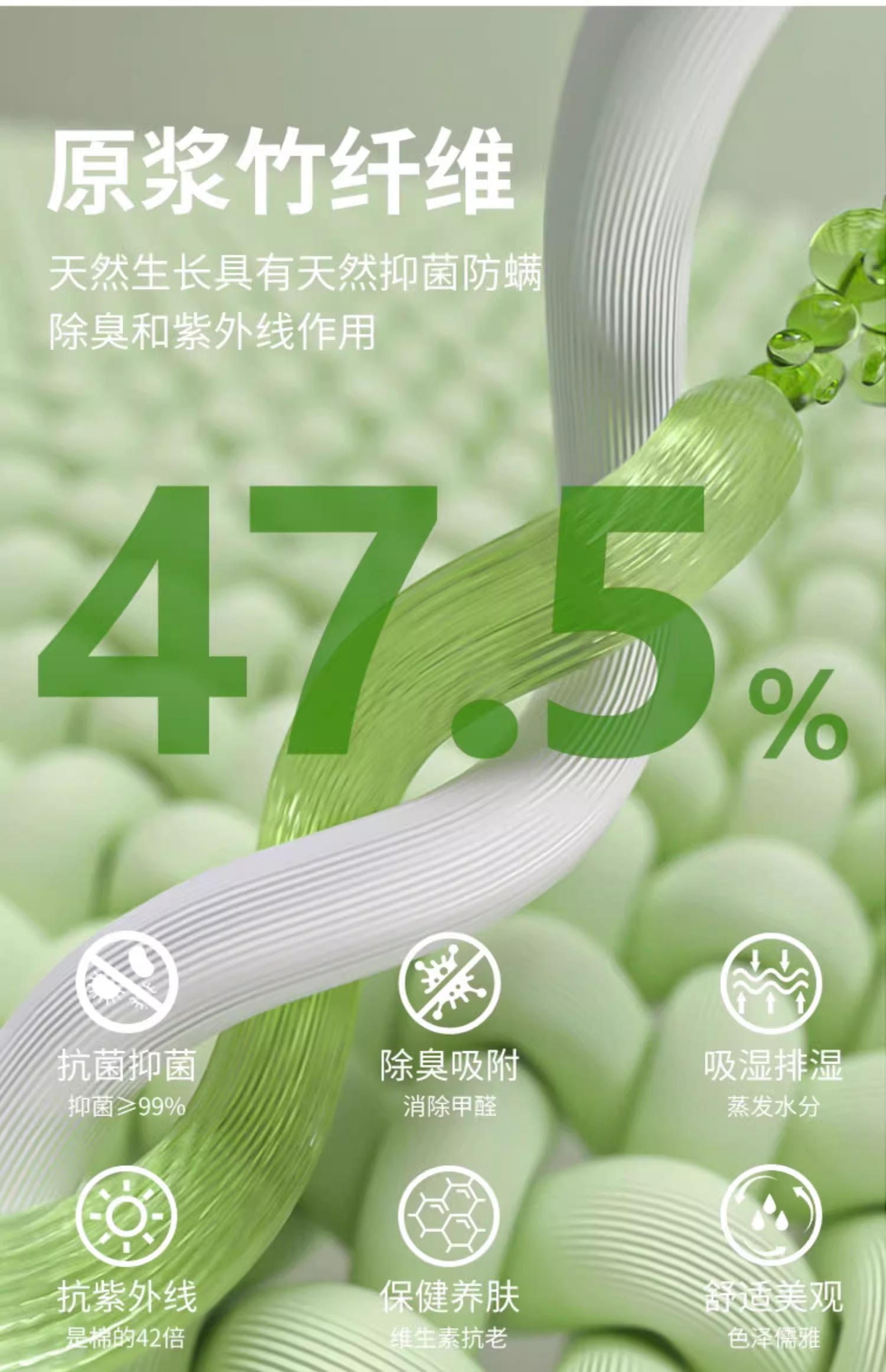 材質成分 | 竹原纖維(竹纖維)47.5% 棉22% 聚丙烯腈纖維(腈綸)19.5% 聚氨酯彈性纖維(氨綸)5% 羊毛3% 桑蠶絲3% |