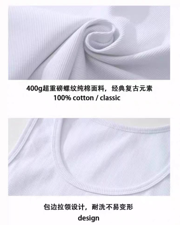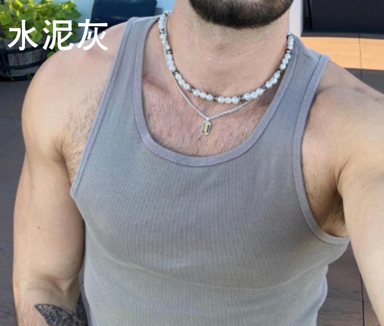 美式460g西海岸重磅純色硬漢粗螺紋訓練運動健身緊身打底背心男潮