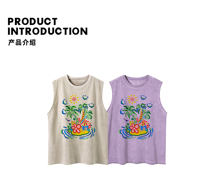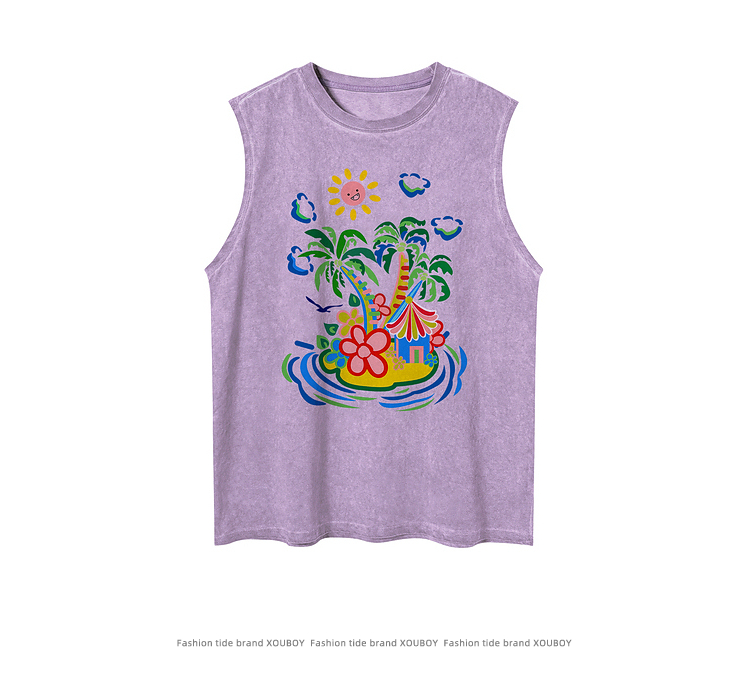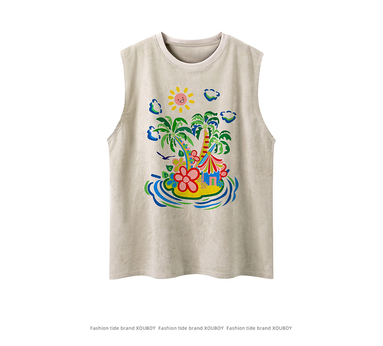 51嘻哈美式高街椰樹印花無袖T恤男夏季寬松oversize運動坎肩背心
