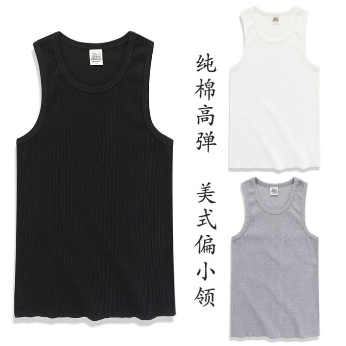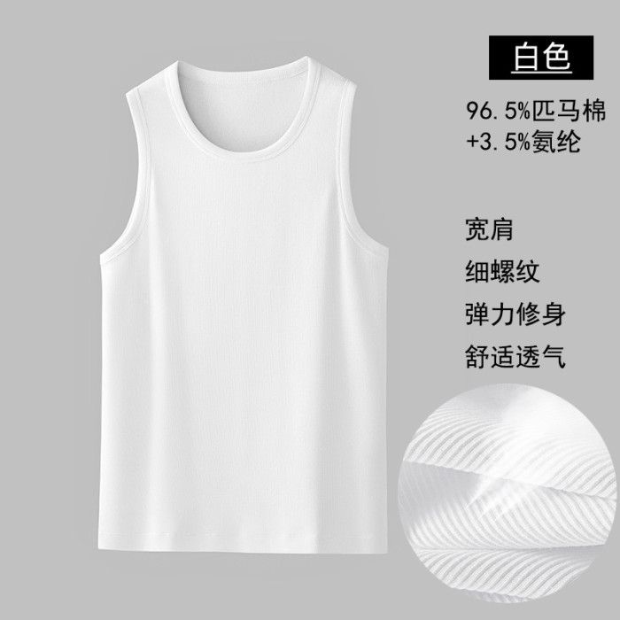 寬肩背心白色 比馬棉240g彈力修身男女同款