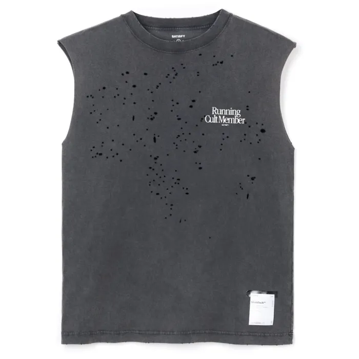 高版本SATISFY 洗水做舊噴墨印花字母背心T恤