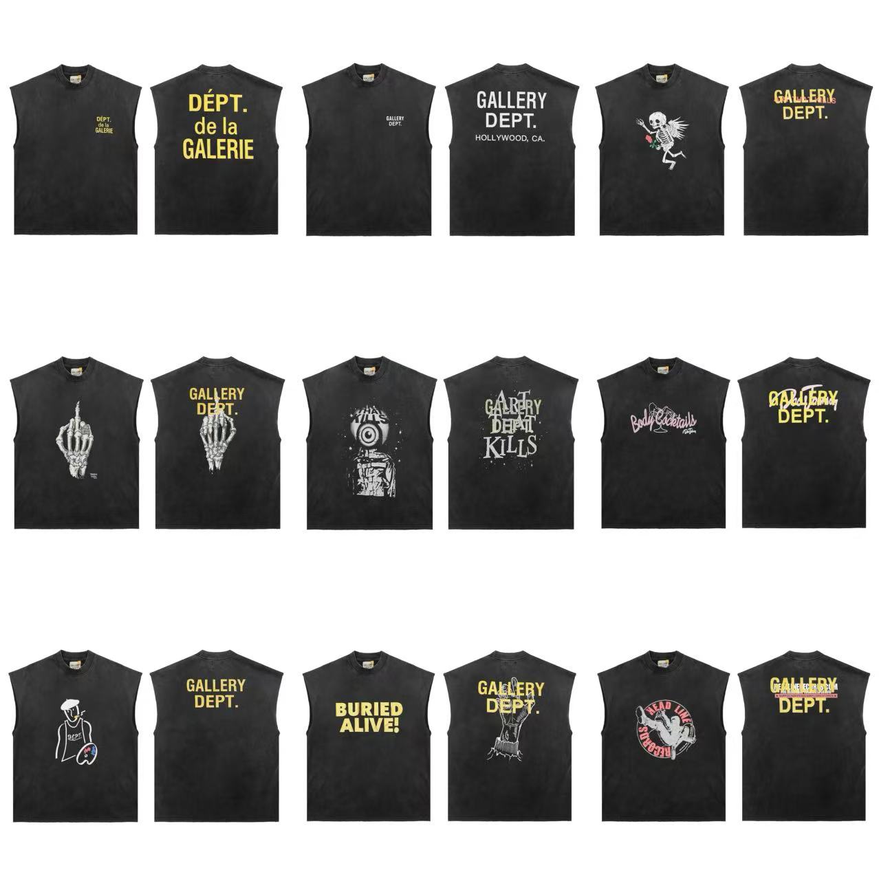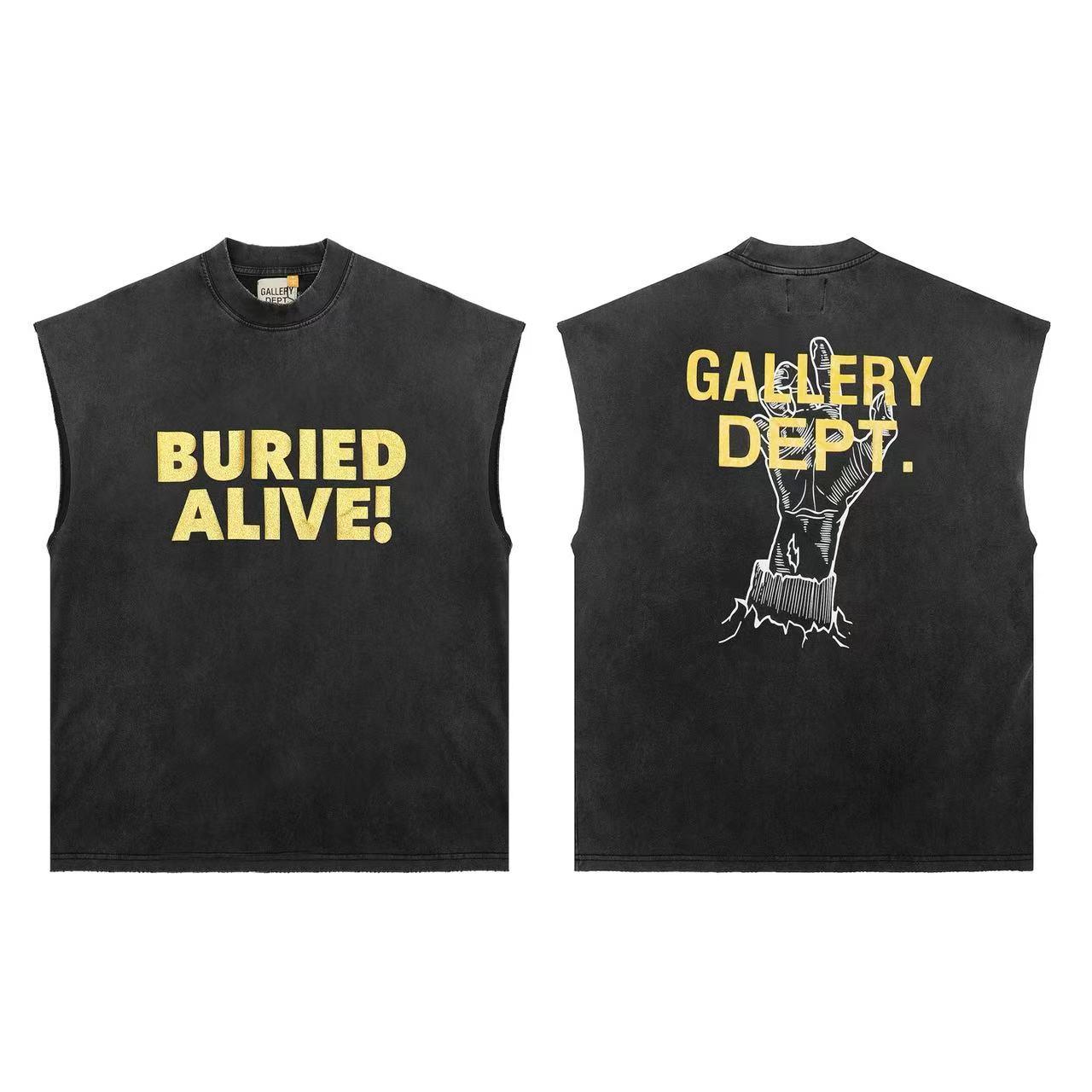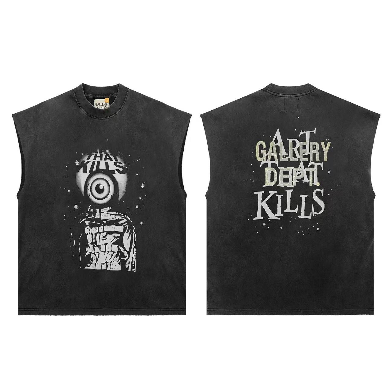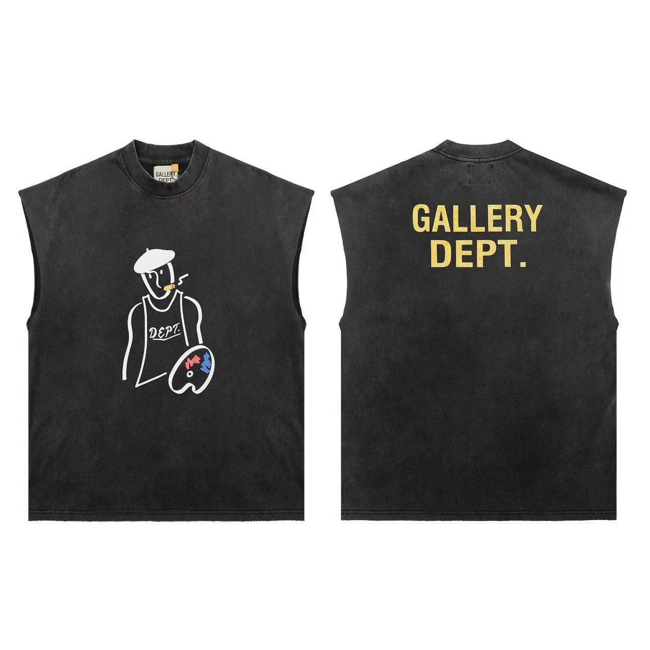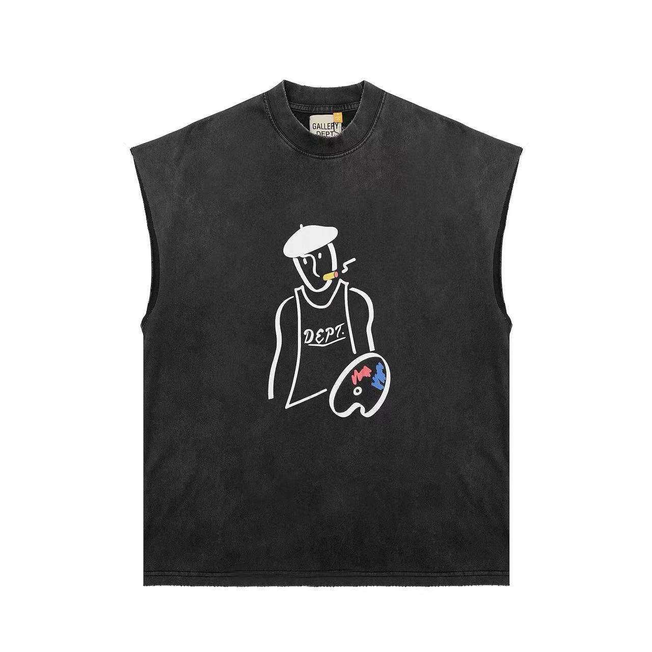 Gallery Dept高街百搭fog復古水洗做舊男無袖背心砍肩短袖情侶潮
