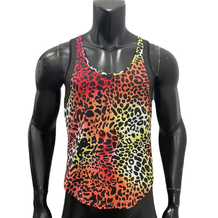歐美2025新款男士小背心豹紋款純色寬松休閒個性龐克系列無袖
