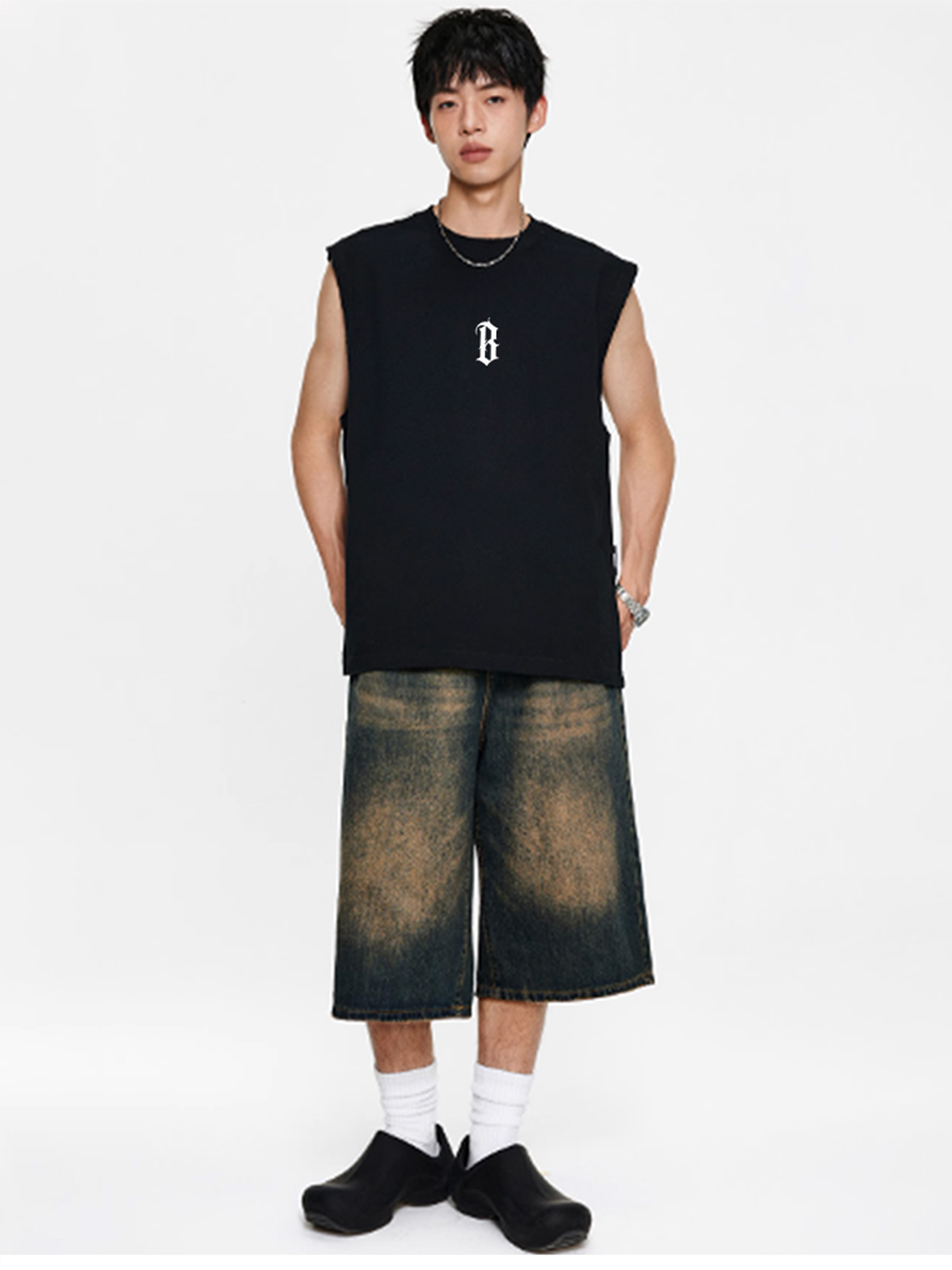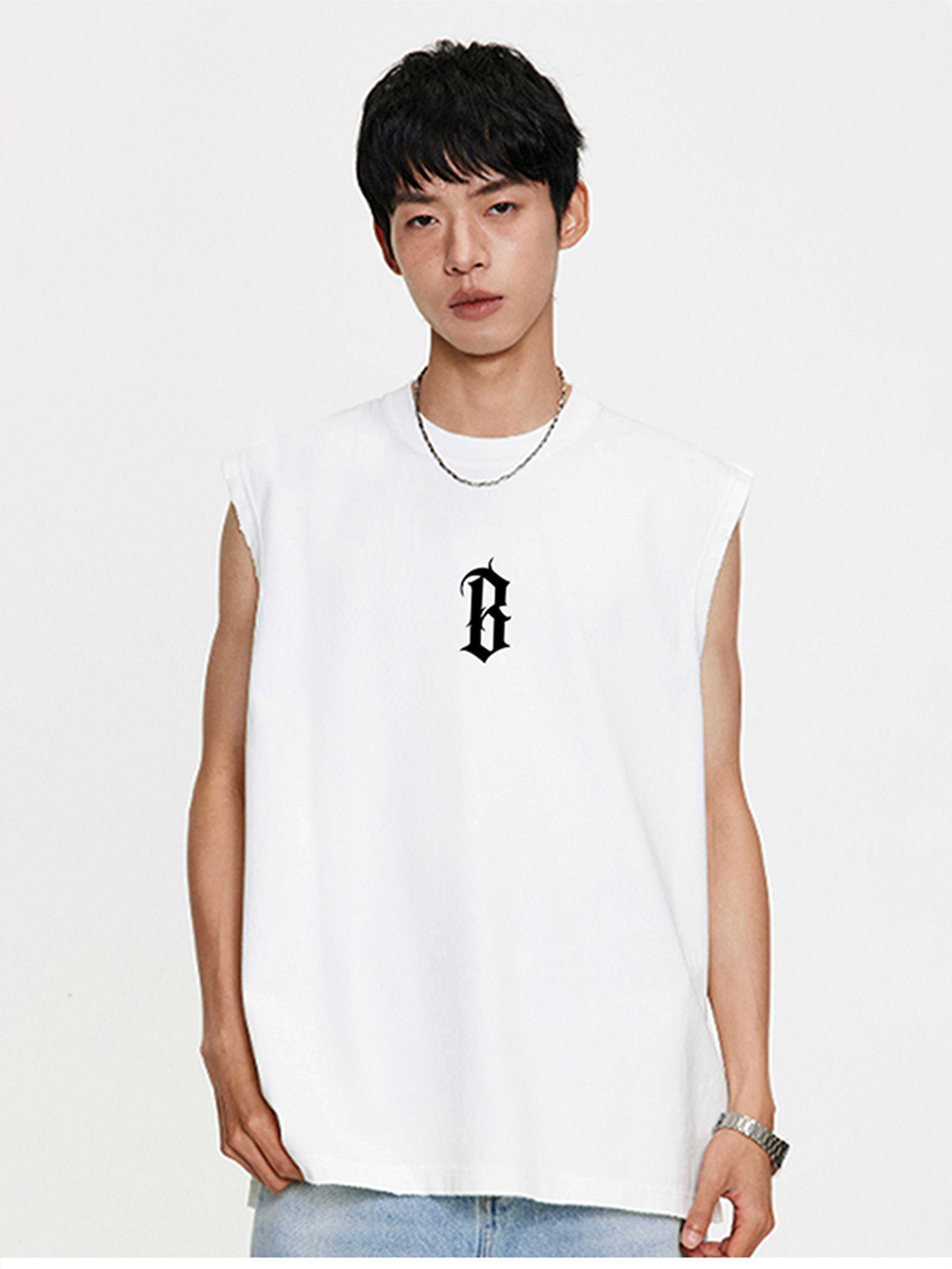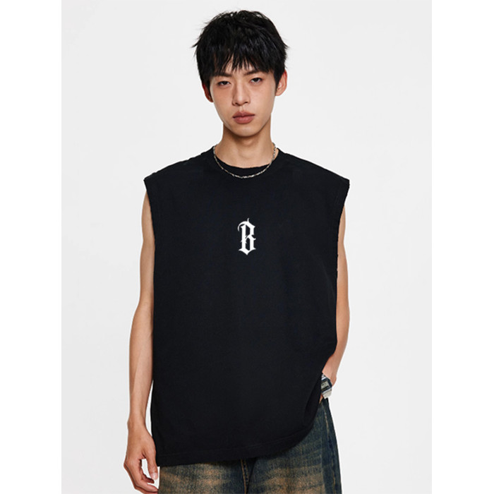 BONELESS BTW美式寬松休閒基礎字母B字印花背心男女潮牌寬松無袖