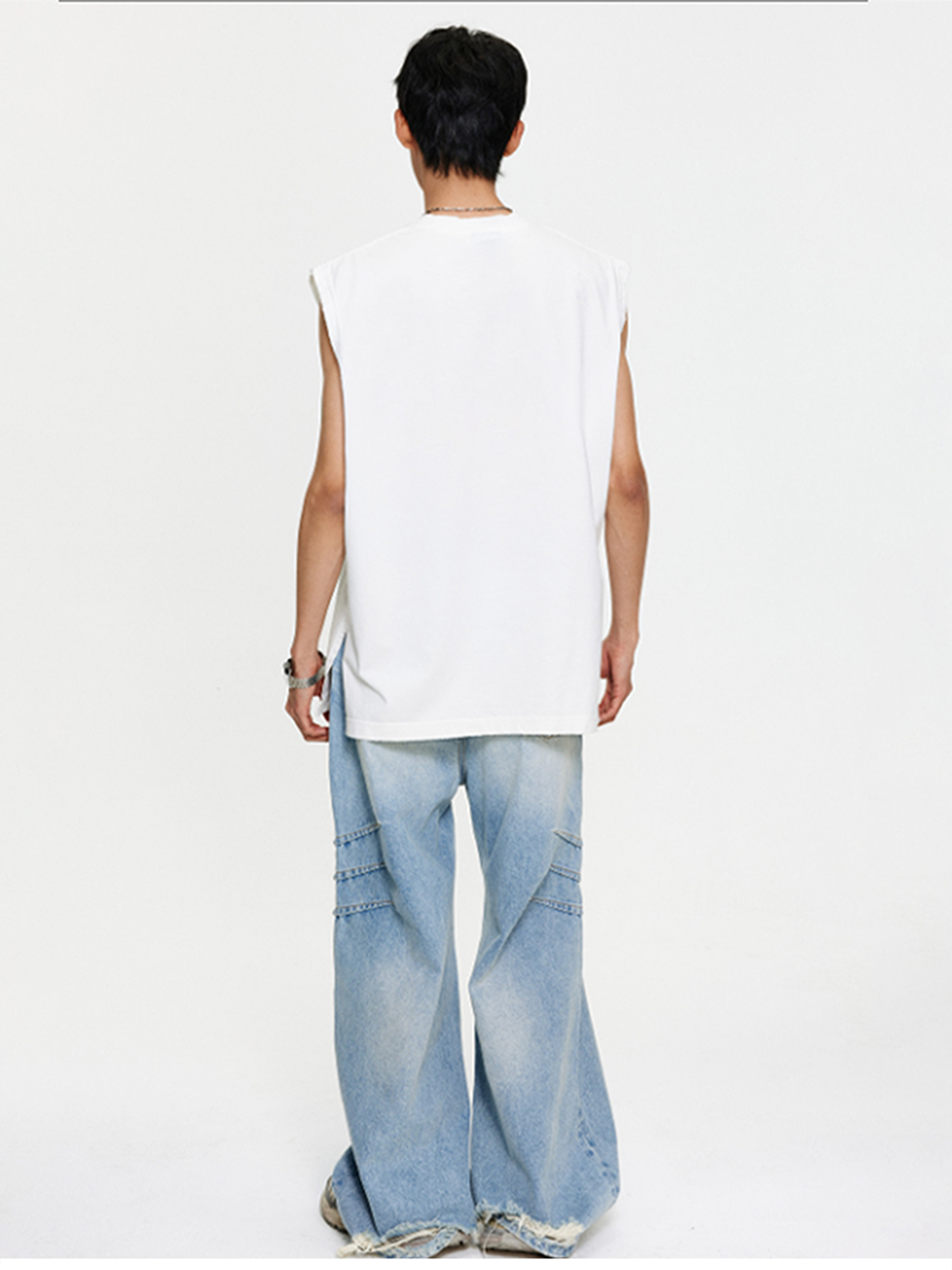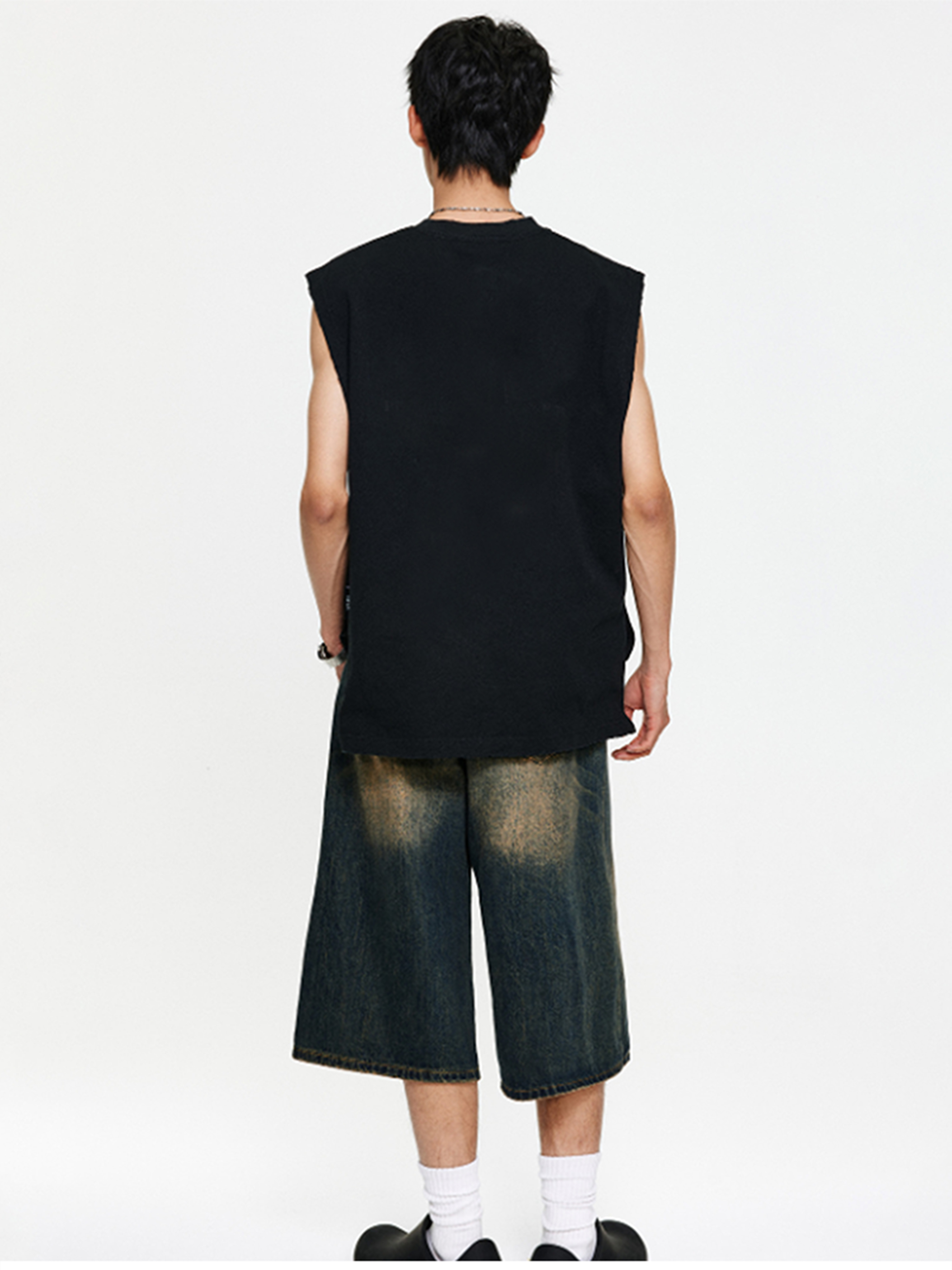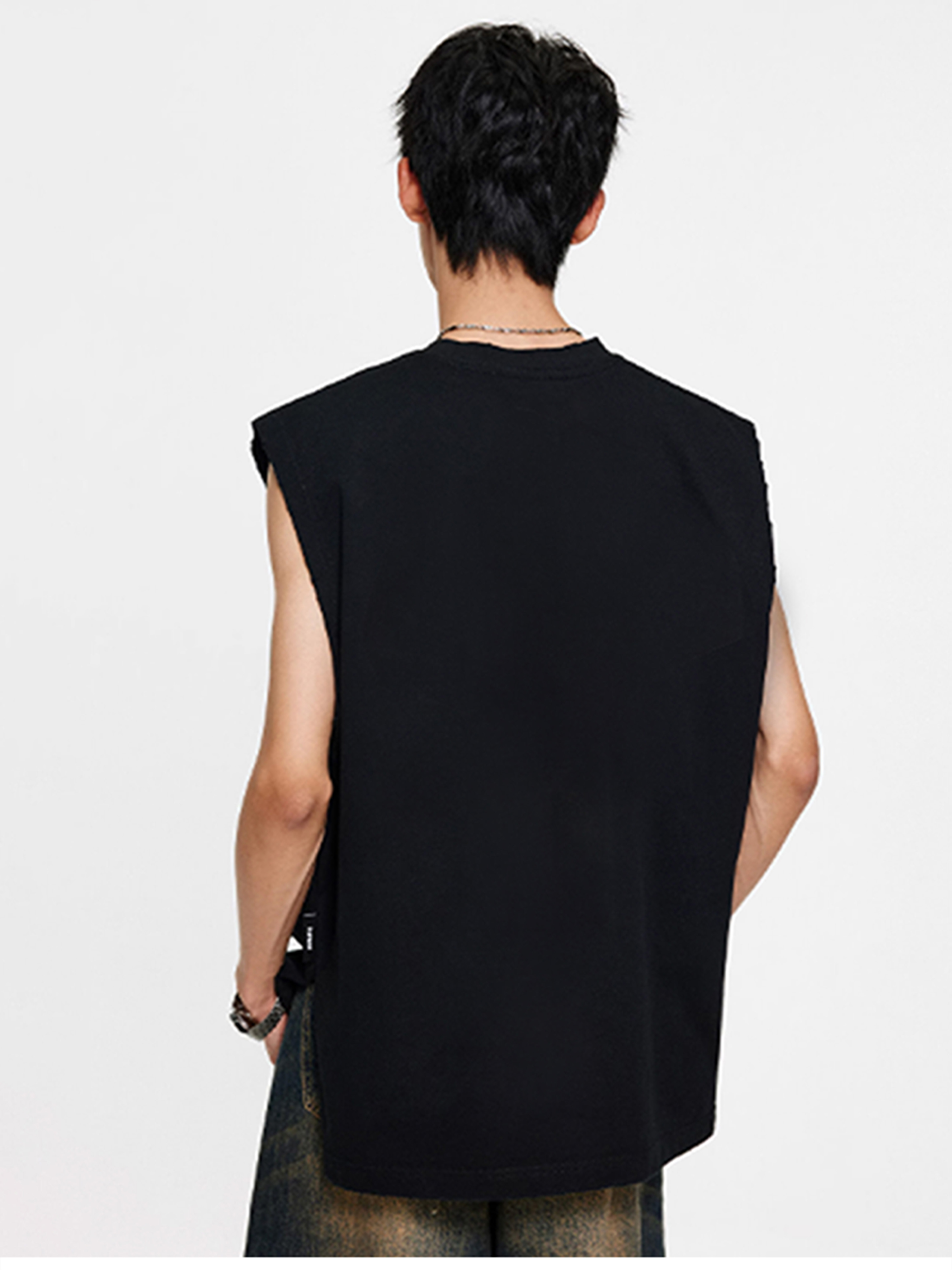 BONELESS BTW美式寬松休閒基礎字母B字印花背心男女潮牌寬松無袖