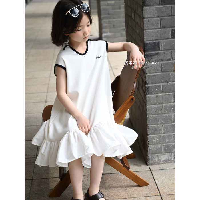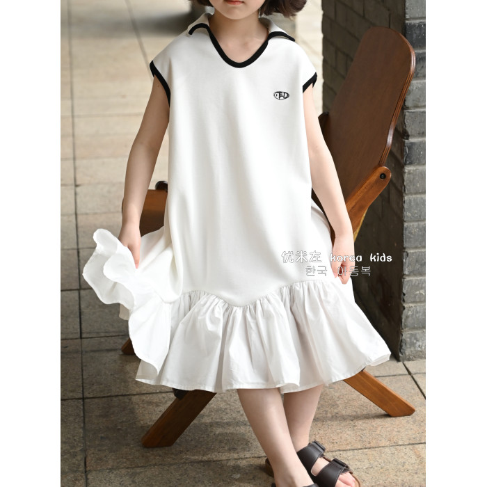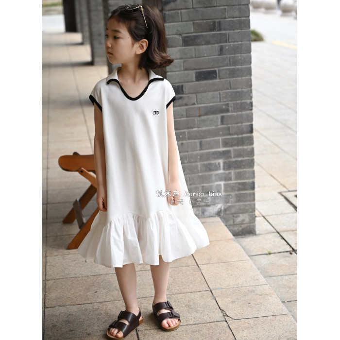 波拉bora童裝氣質女童連衣裙2025兒童學院風裙子中大童夏裝T恤裙