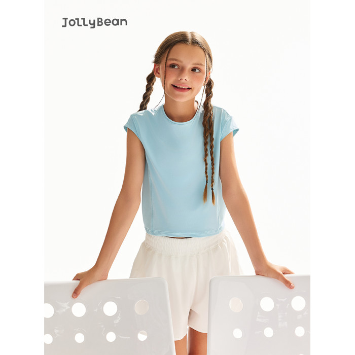 jollybean丨女童短袖25夏季新款兒童後背鏤空防曬運動短袖