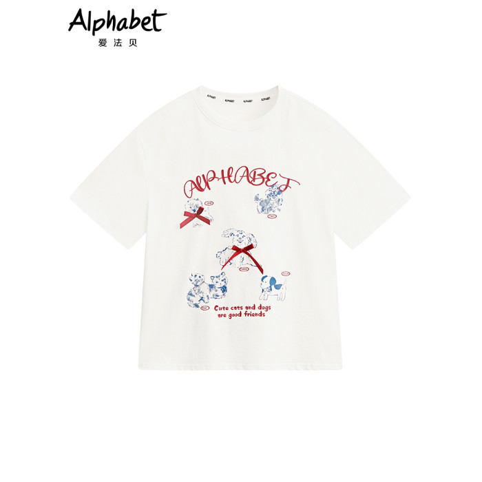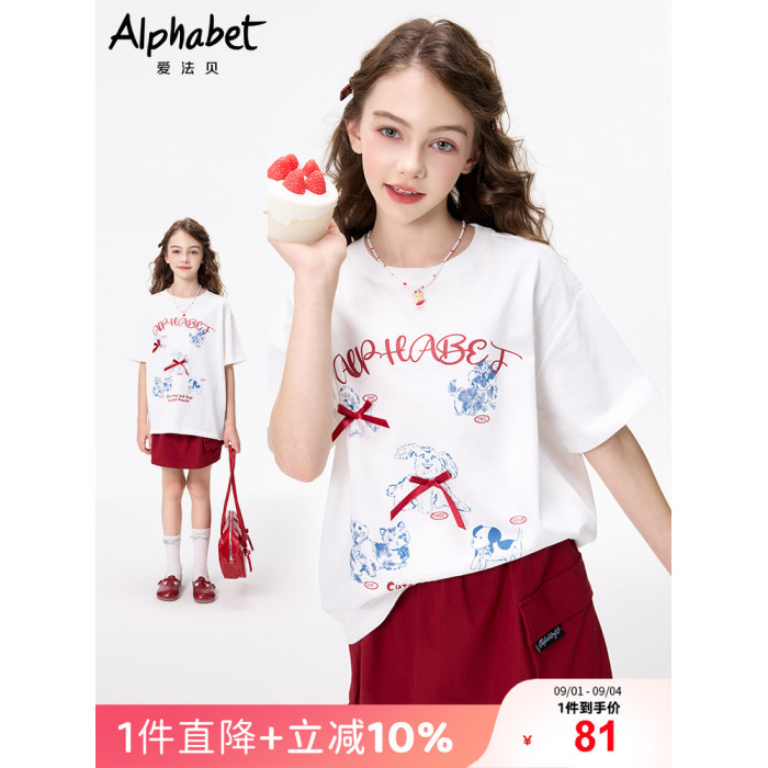 2025夏季新款女童短袖T恤中大兒童裝洋氣蝴蝶結上衣