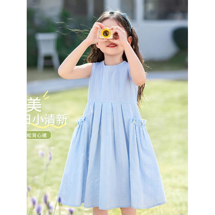 女童2025純棉連衣裙夏季新款洋氣兒童公主清新裙子純棉無袖背心