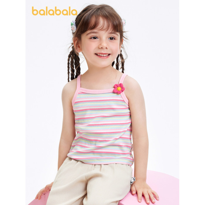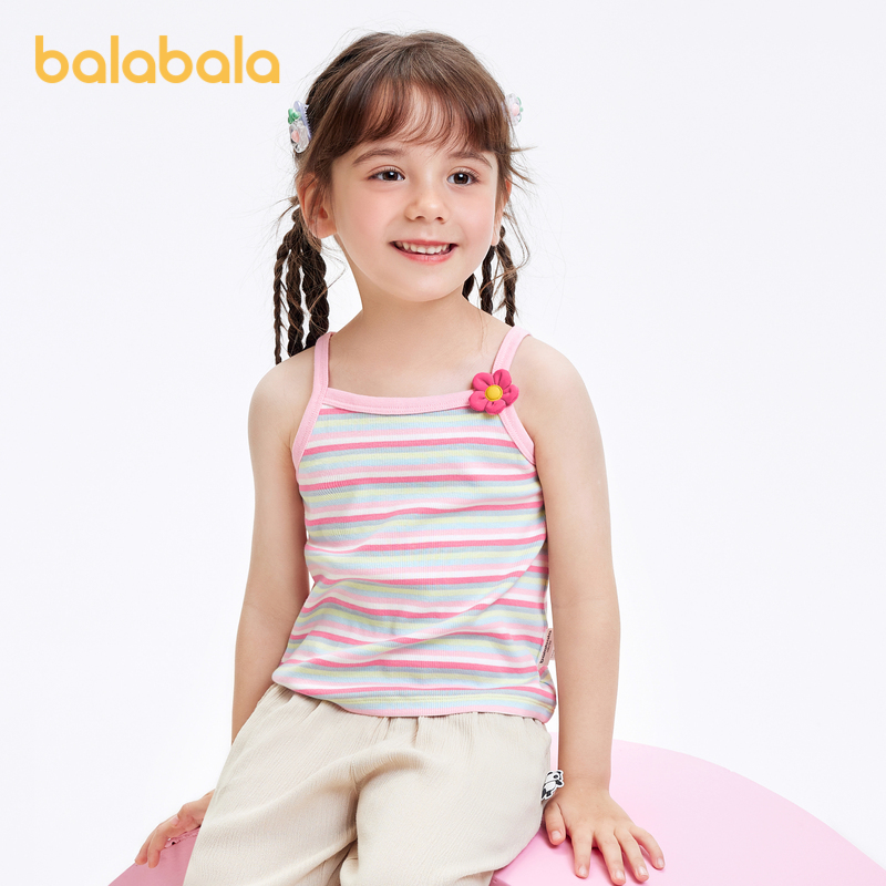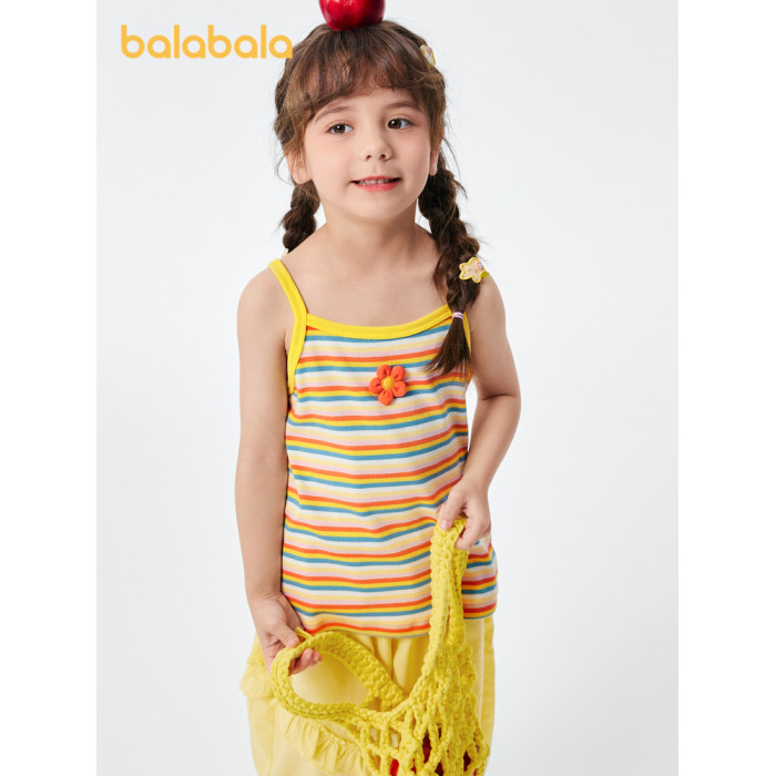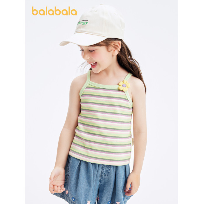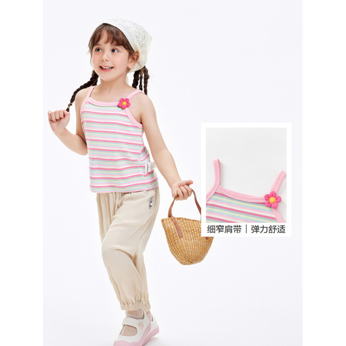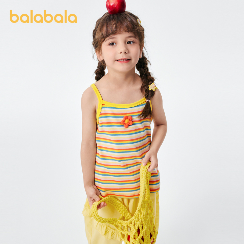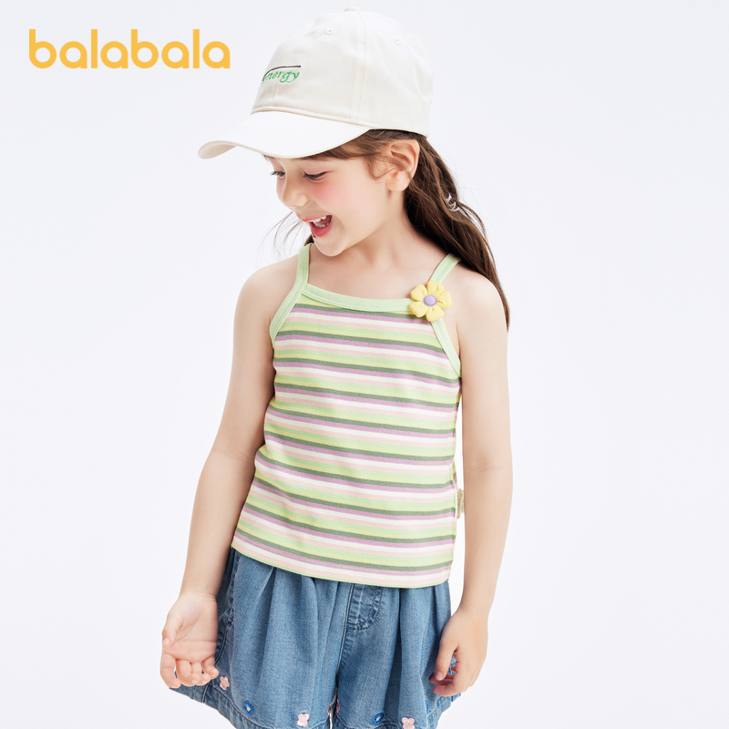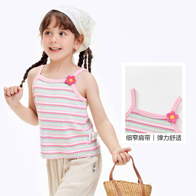 巴拉巴拉童裝T恤兒童短袖新款夏裝女童條紋背心洋氣甜美吊帶