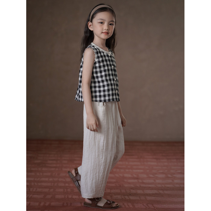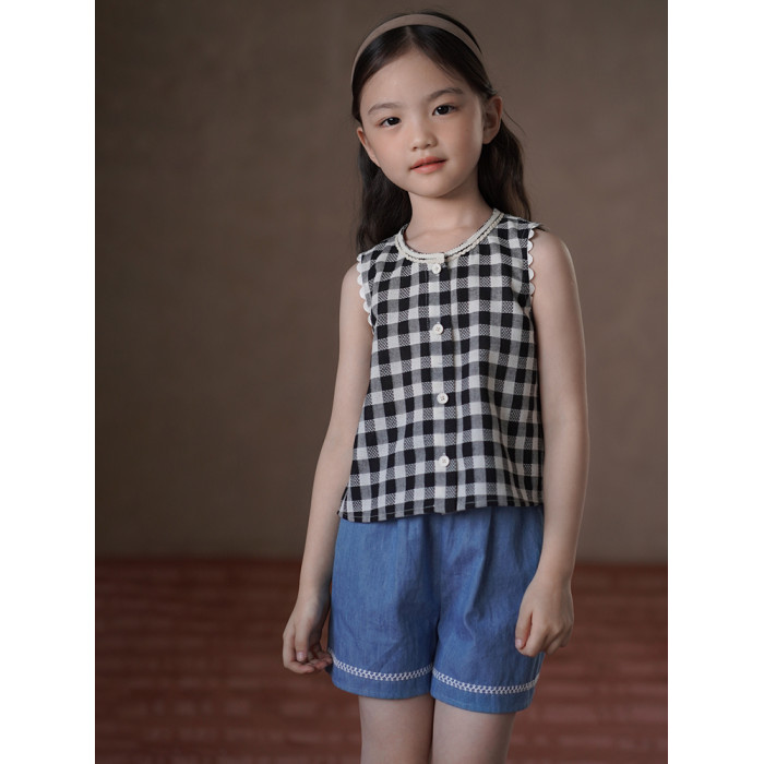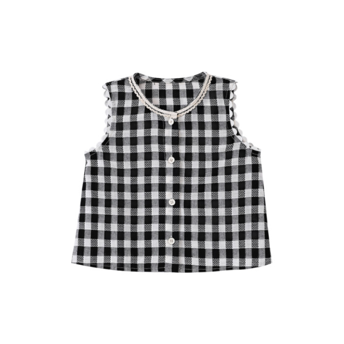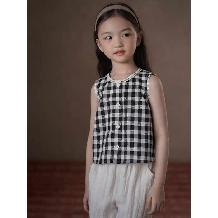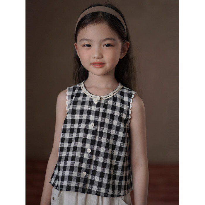 哈齒童裝夏季薄款兒童韓版格子無袖上衣女童襯衫復古休閒背心女孩