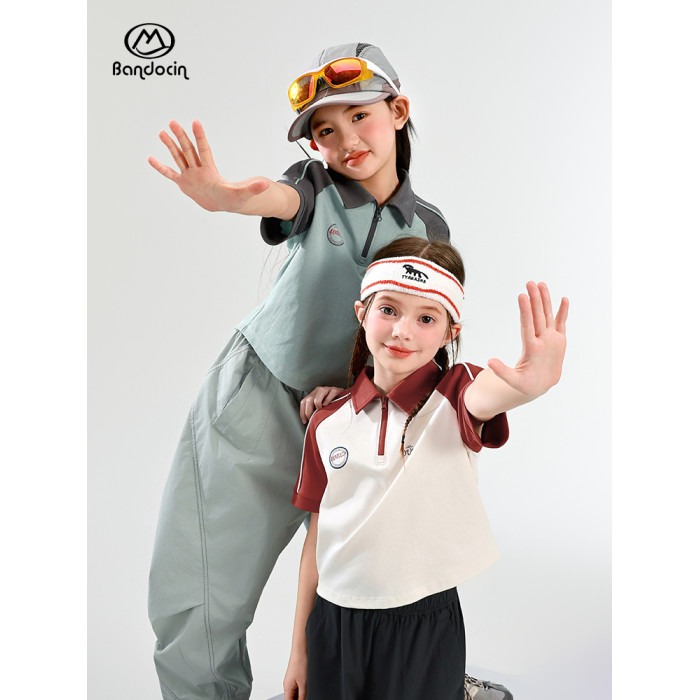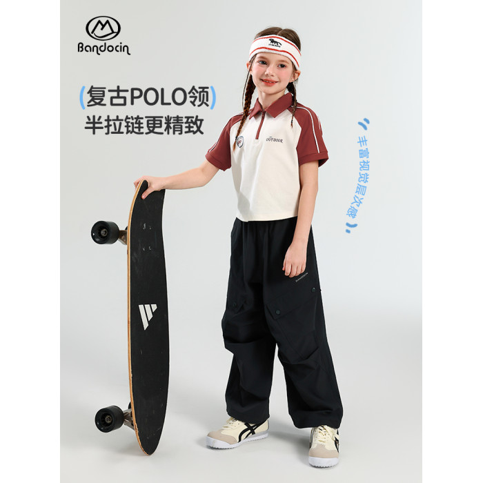 半度閒女童夏裝運動polo短袖洋氣中大童2025新款兒童夏季薄款上衣