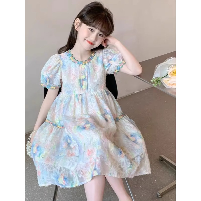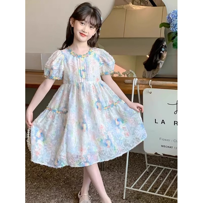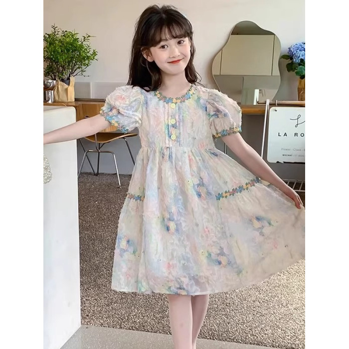 女童連衣裙2025夏裝新款兒童洋氣純棉裙子女孩夏季親膚碎花公主裙