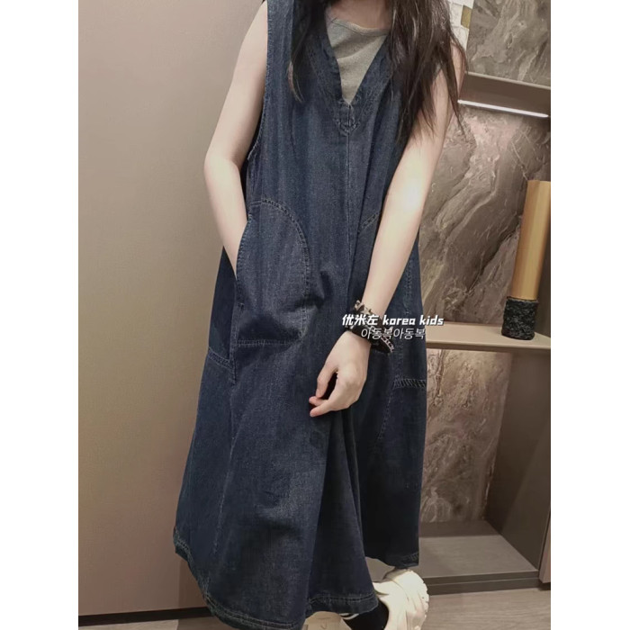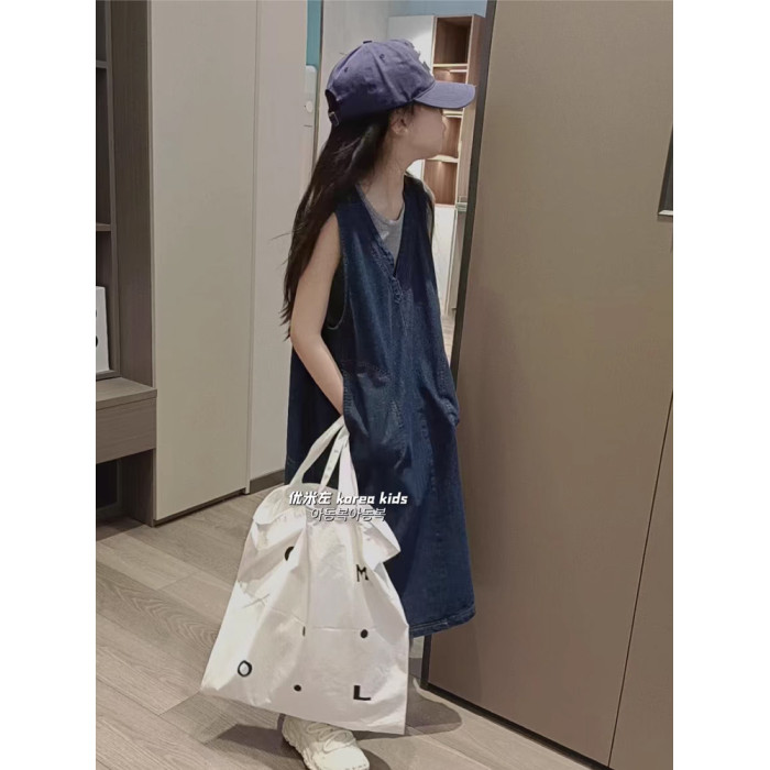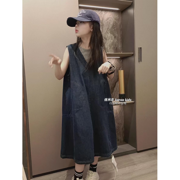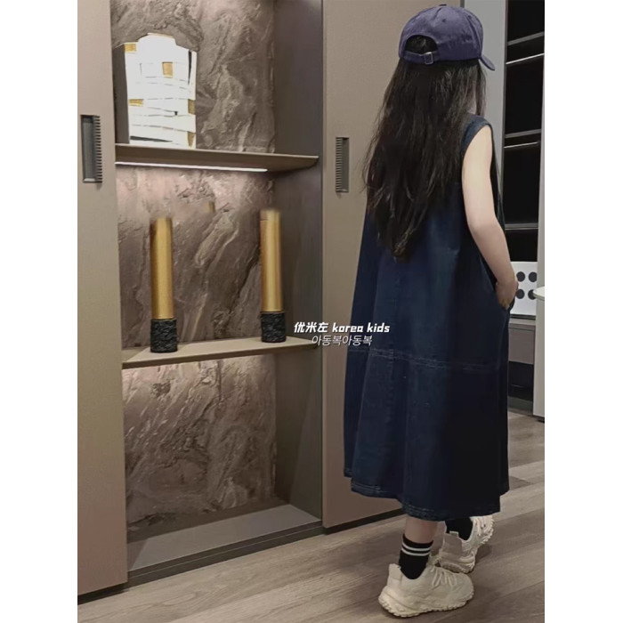 波拉bora韓國童裝洋氣女童牛仔裙背心裙夏裝新款高級感女孩連衣裙