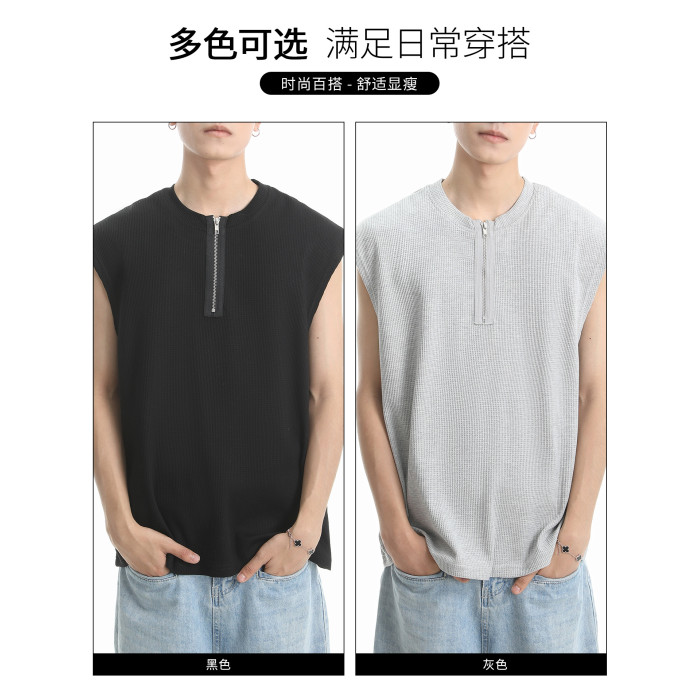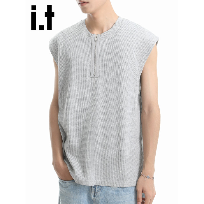 it :5cm/FIVECM美式灰色半拉鍊針織背心男款2025夏季薄款圓領上衣