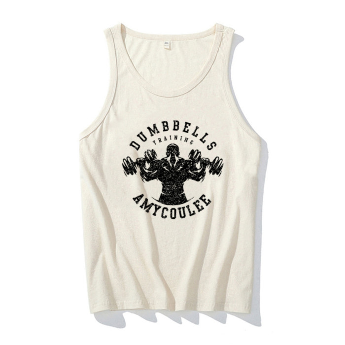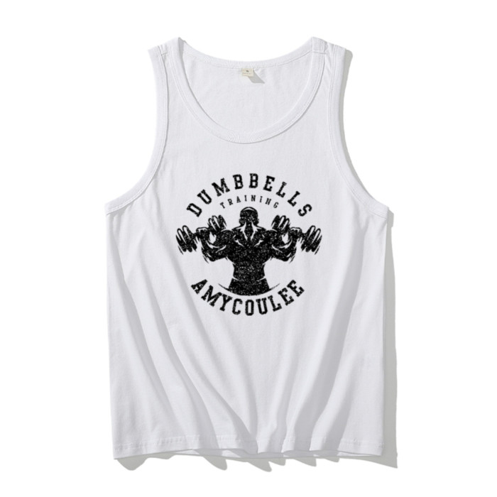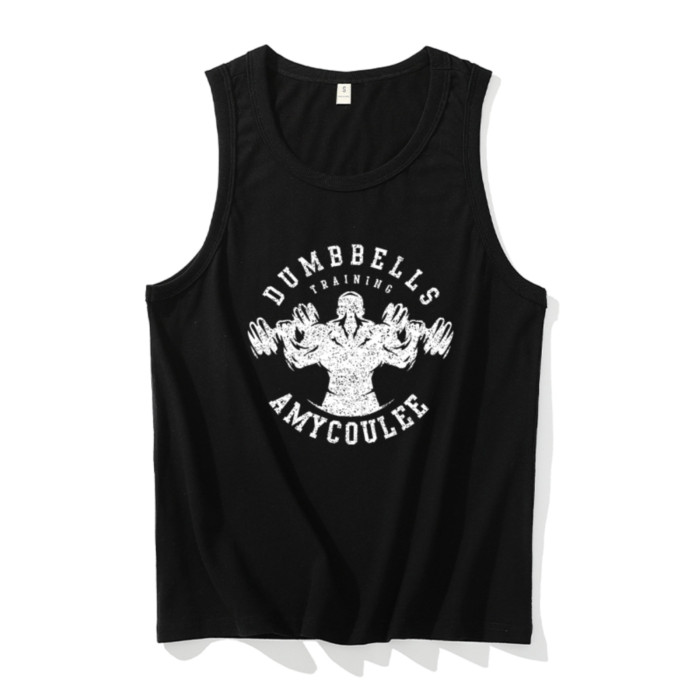 美式印花背心男夏季純棉細肩帶打底坎肩汗衫運動健身黑色無袖t恤