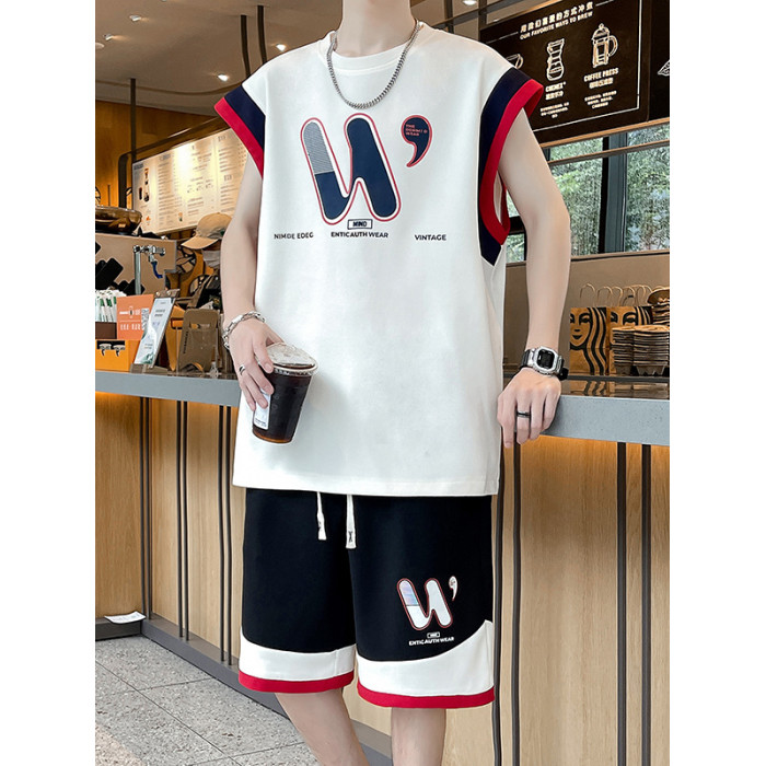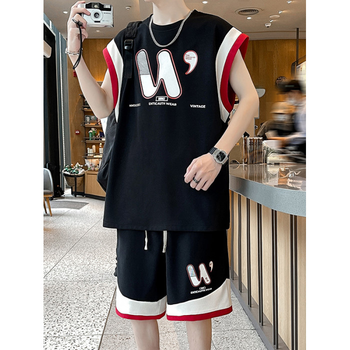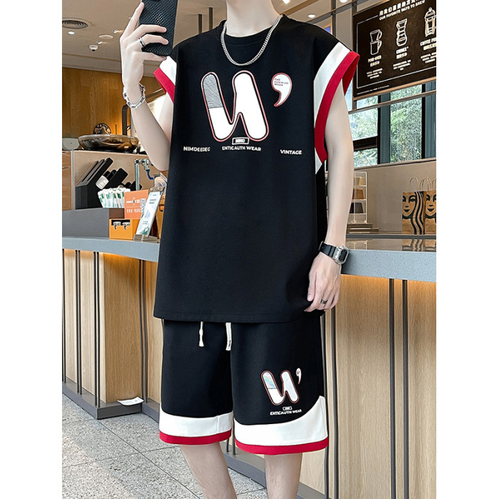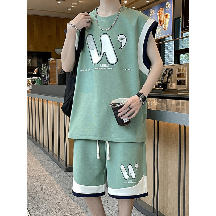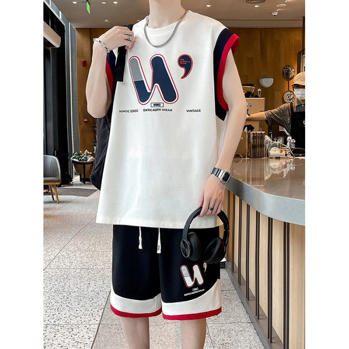 青少年無袖t恤男夏季運動套裝高中初中學生冰絲背心帥氣大童夏裝