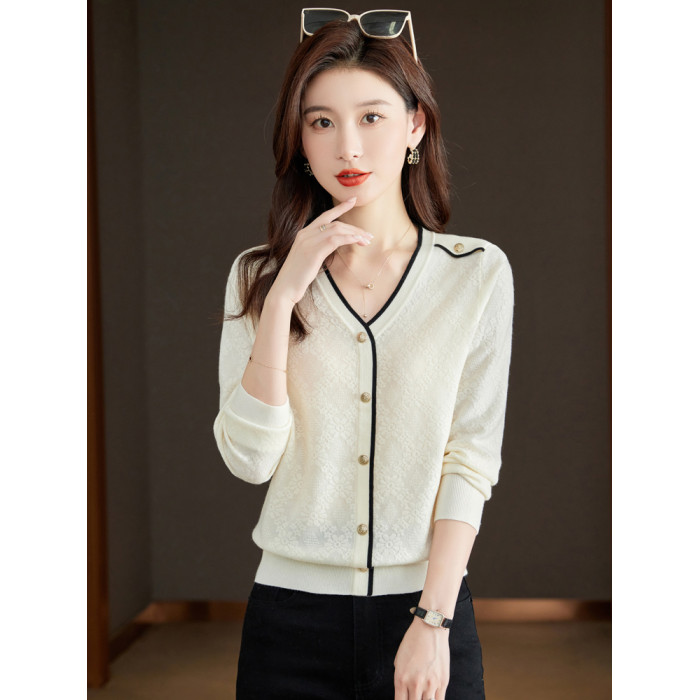 小香風針織衫女短款2025新款時尚洋氣薄款毛衣外穿寬松羊毛打底衫