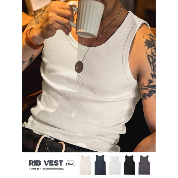 馬登工裝復古白色棉健身背心運動老頭跨欄重磅內搭螺紋坎肩打底男