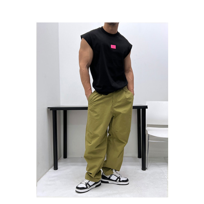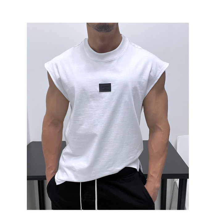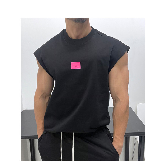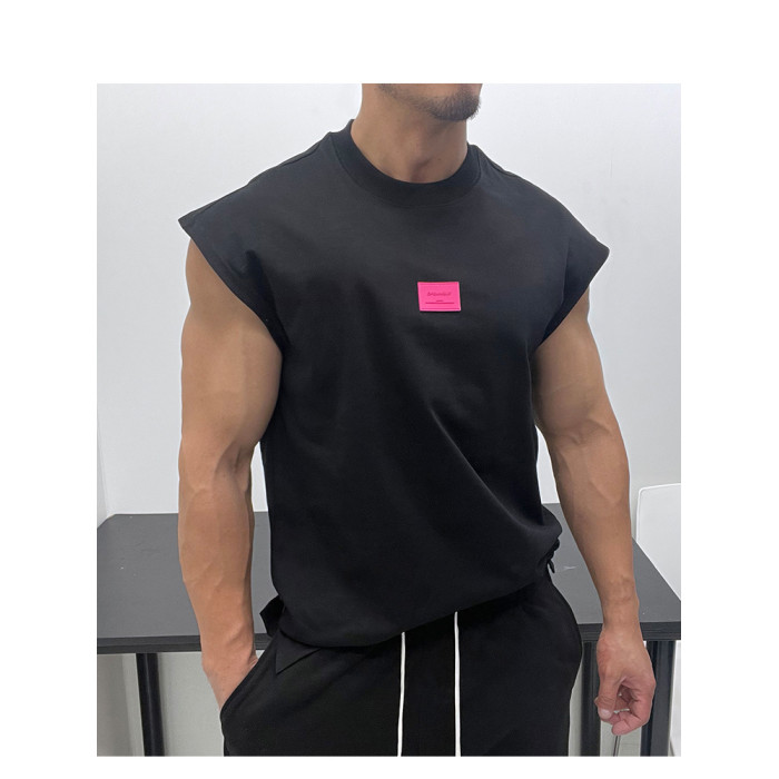 高克重棉重磅廓形小領口寬落肩顯壯寬松無袖T恤背心運動男體育生