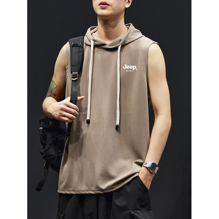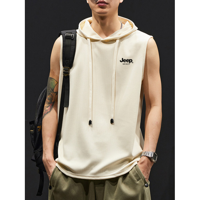 JEEP吉普連帽坎肩t恤衫男2025新款痞帥運動潮牌冰絲圓領無袖背心