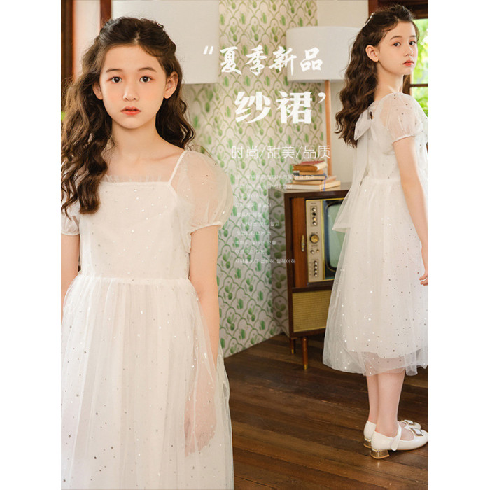 女童連衣裙夏裝2025新款洋氣夏季童裝小女孩公主裙紗裙兒童裙子夏