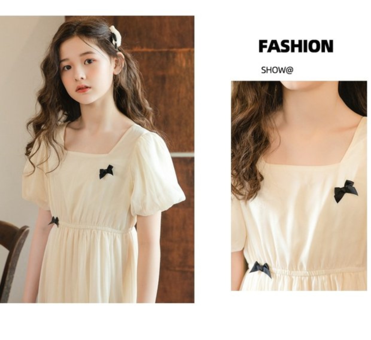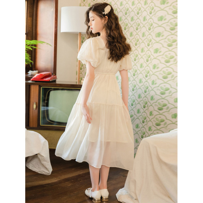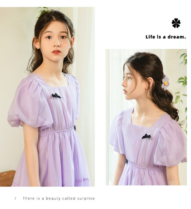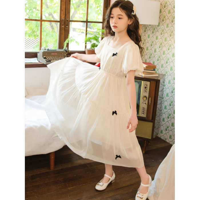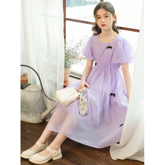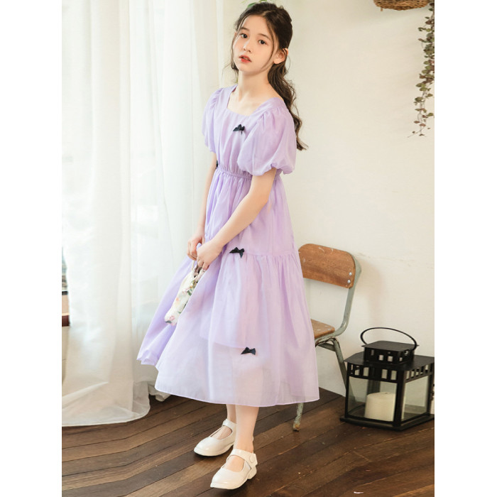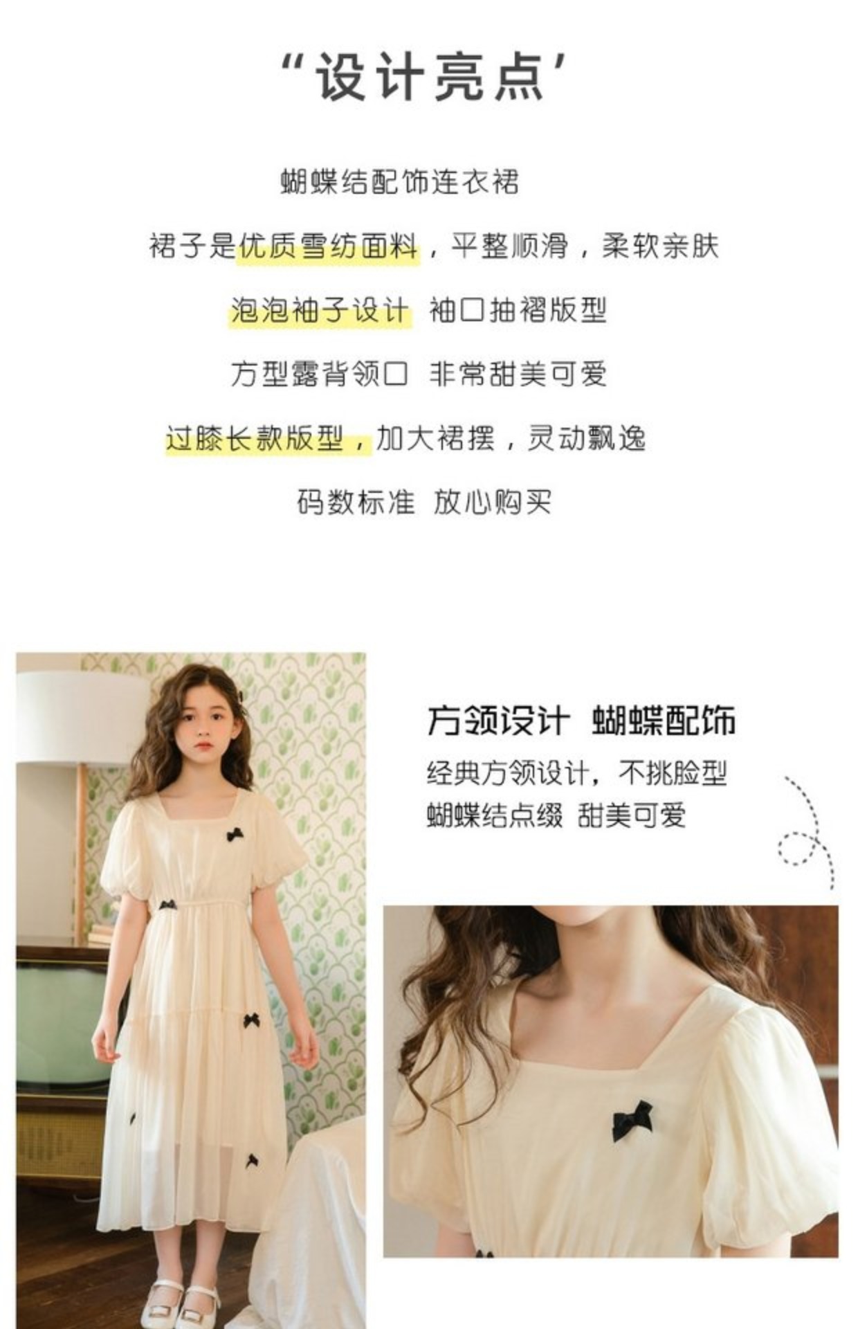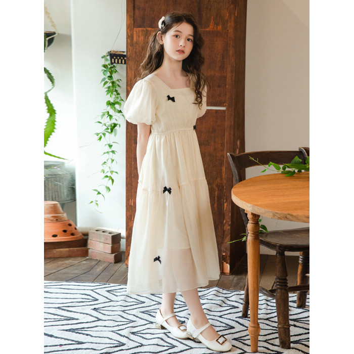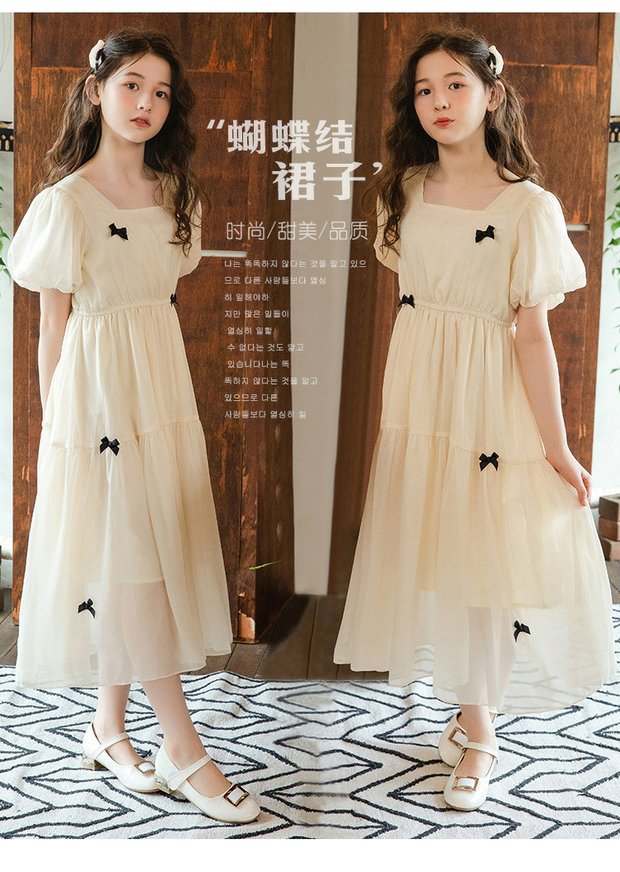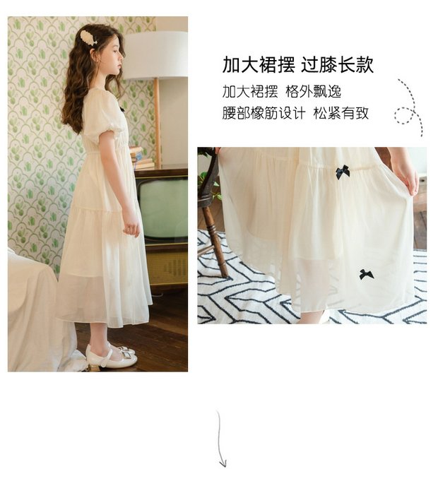 女童夏裝連衣裙2025新款大童公主裙洋氣沙灘女孩兒童過膝長裙裙子