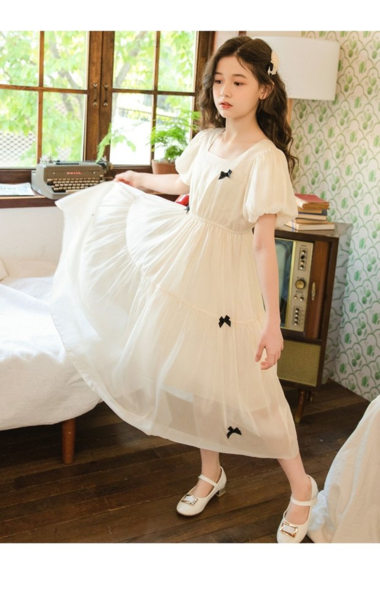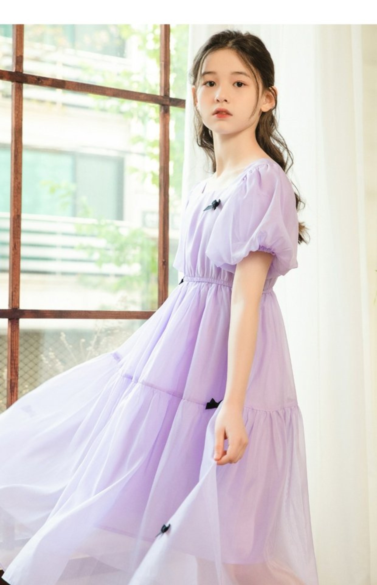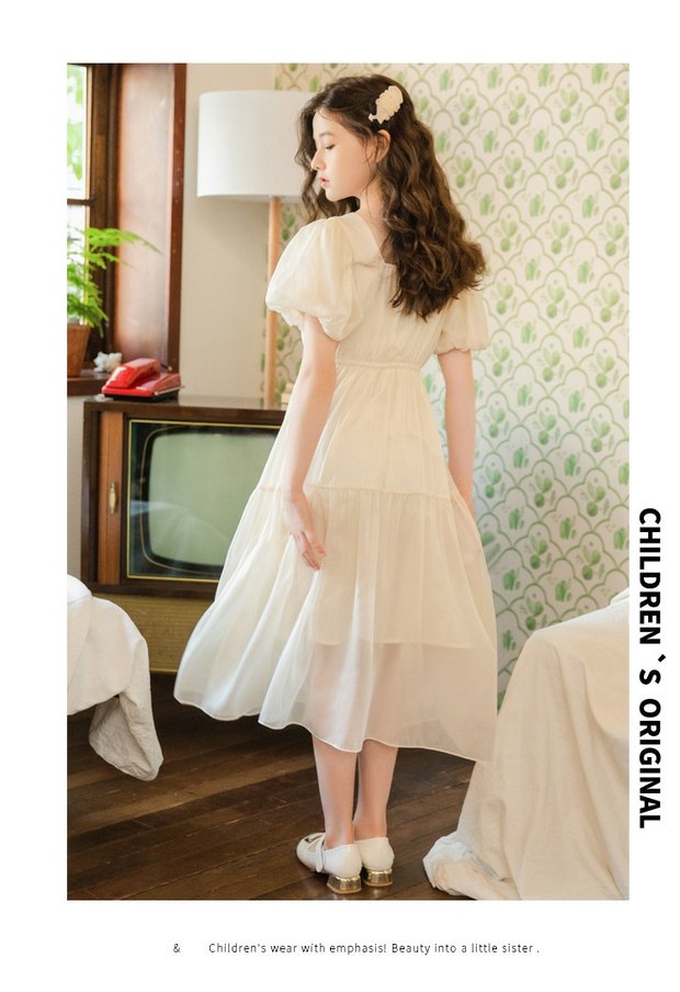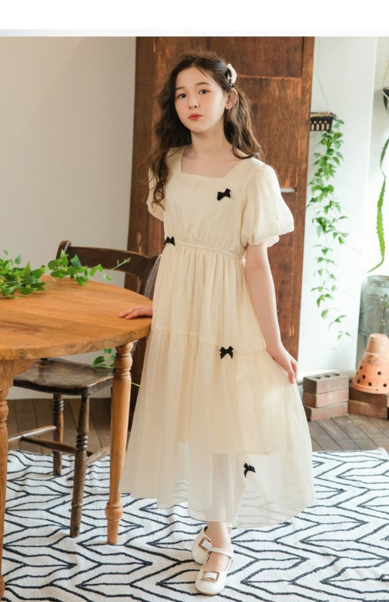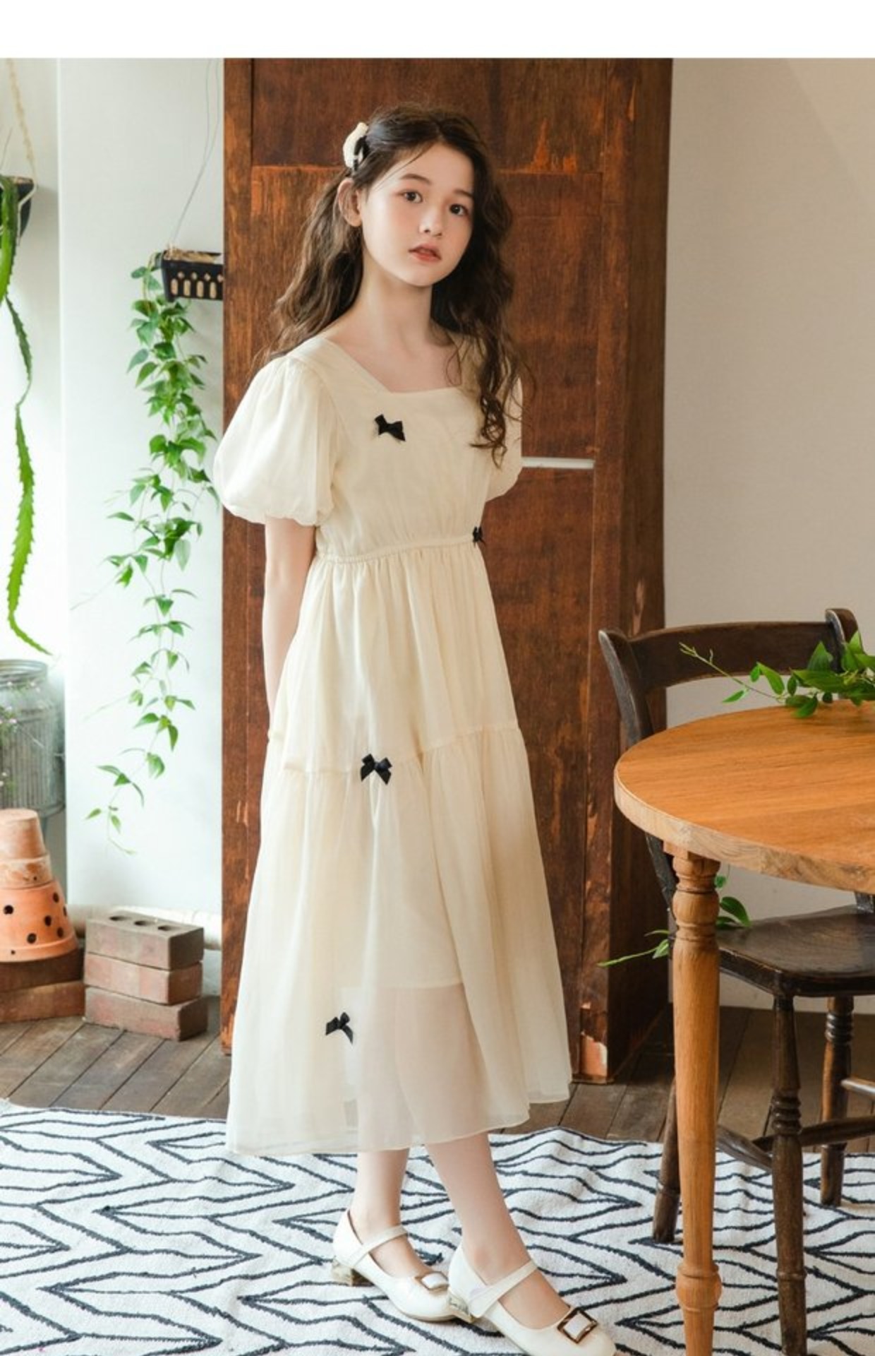 女童夏裝連衣裙2025新款大童公主裙洋氣沙灘女孩兒童過膝長裙裙子