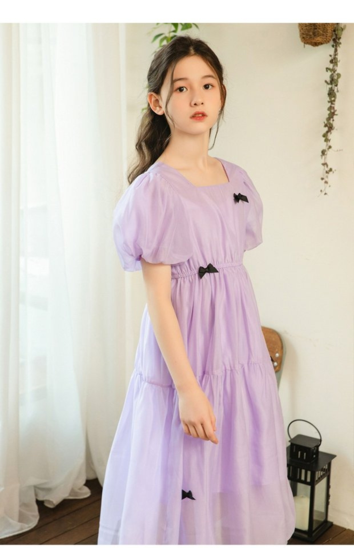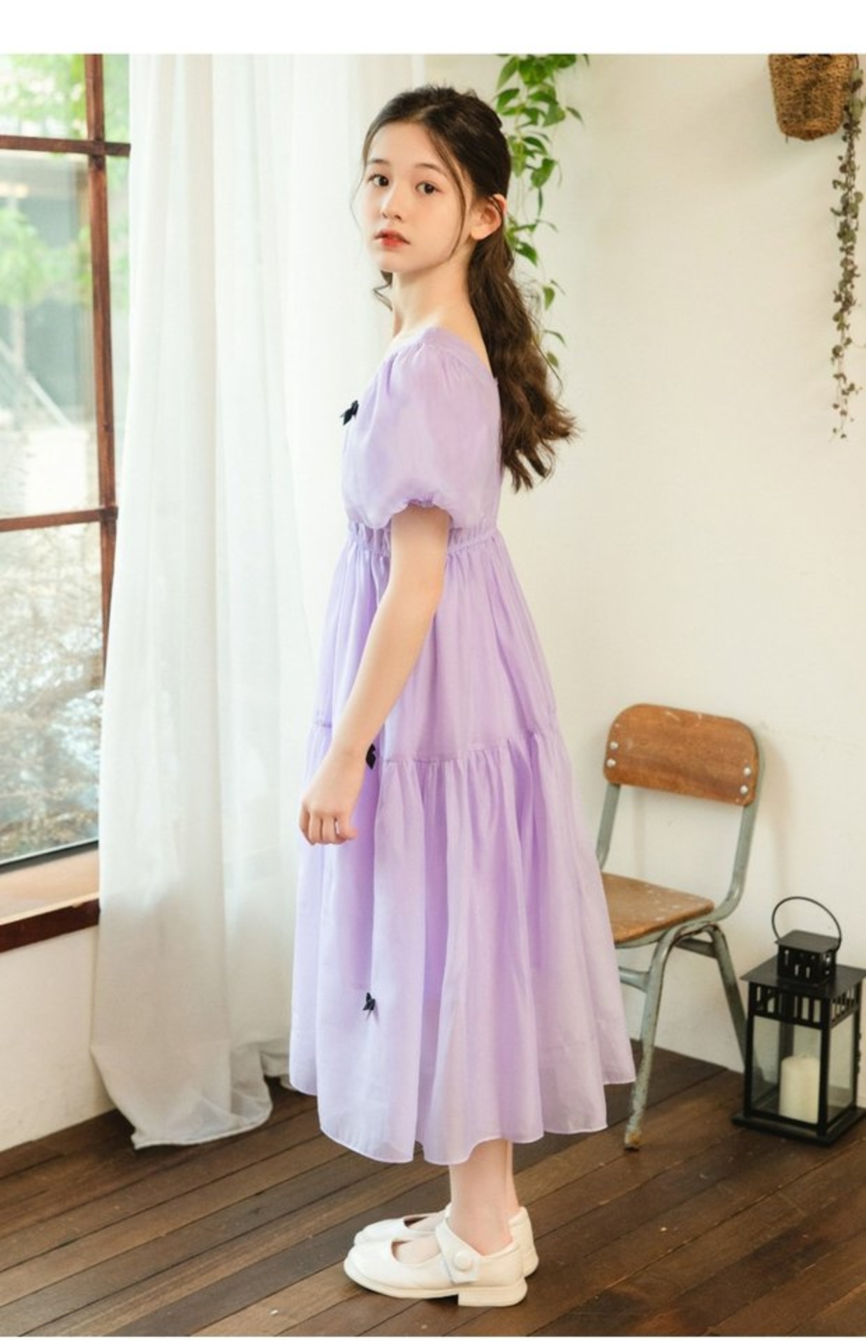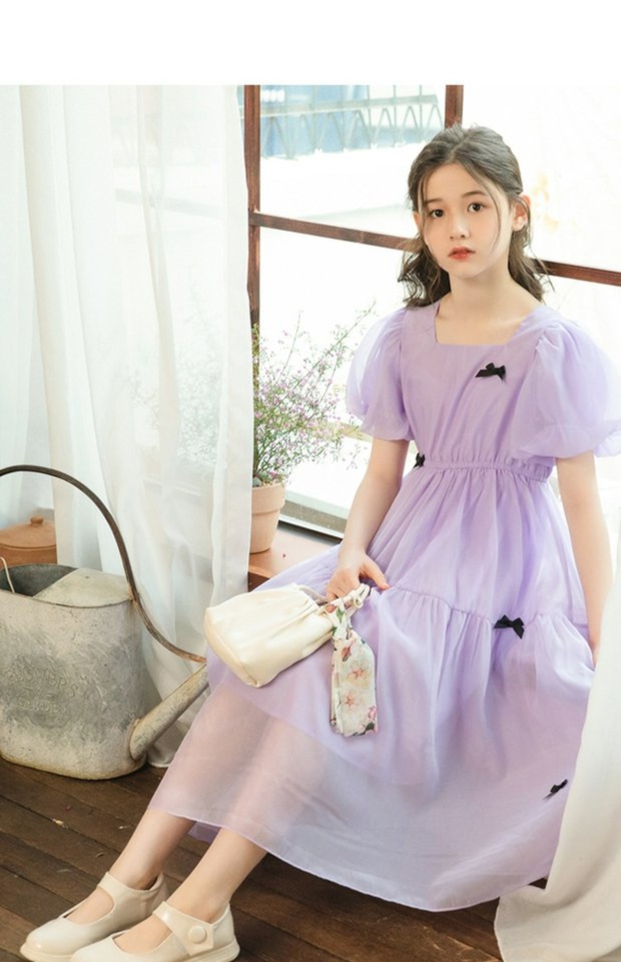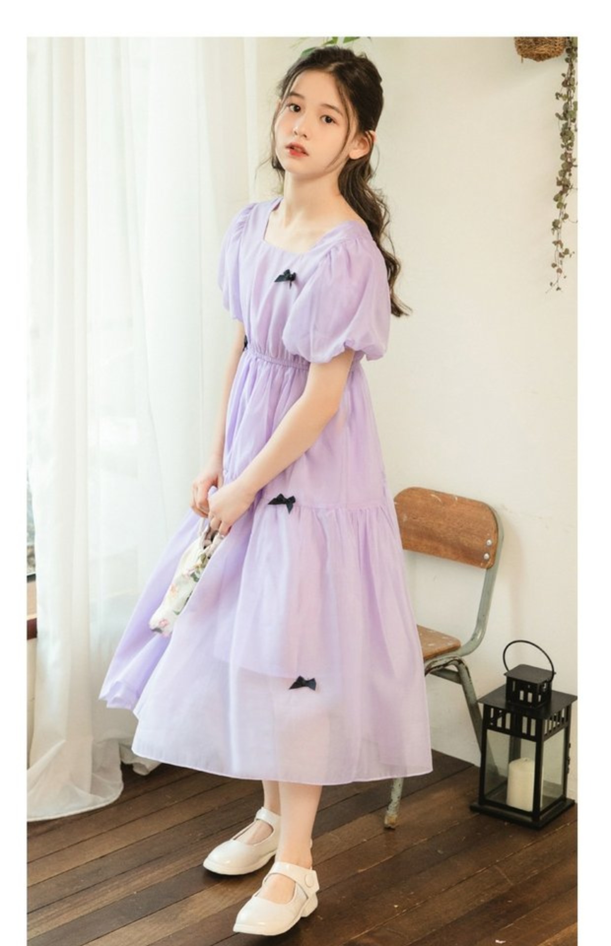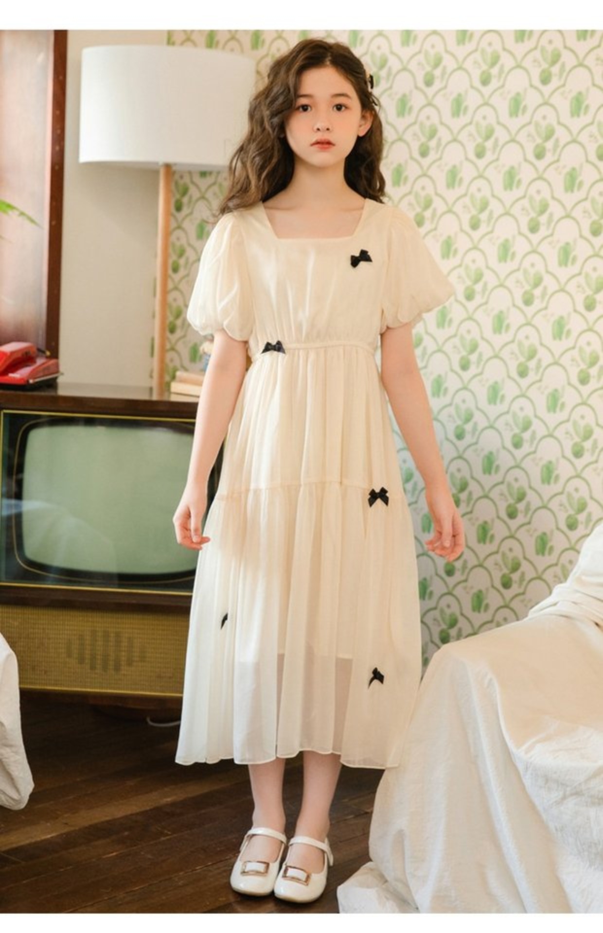 女童夏裝連衣裙2025新款大童公主裙洋氣沙灘女孩兒童過膝長裙裙子