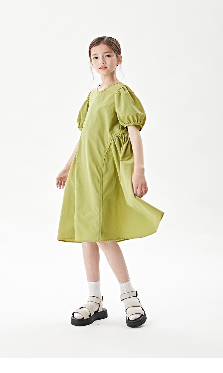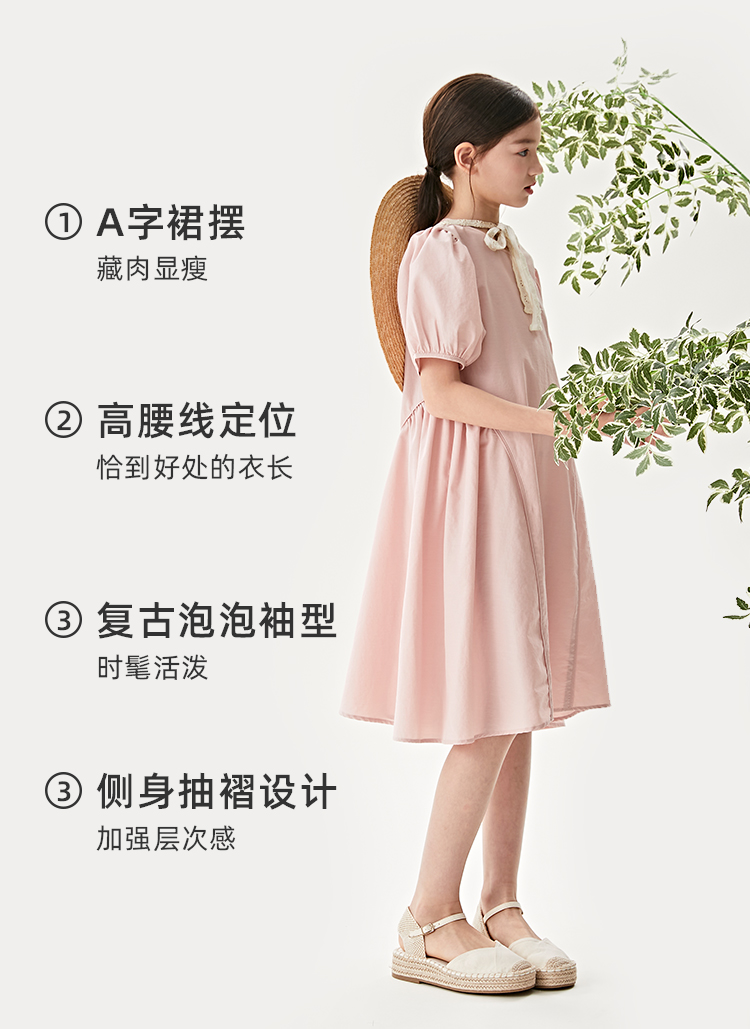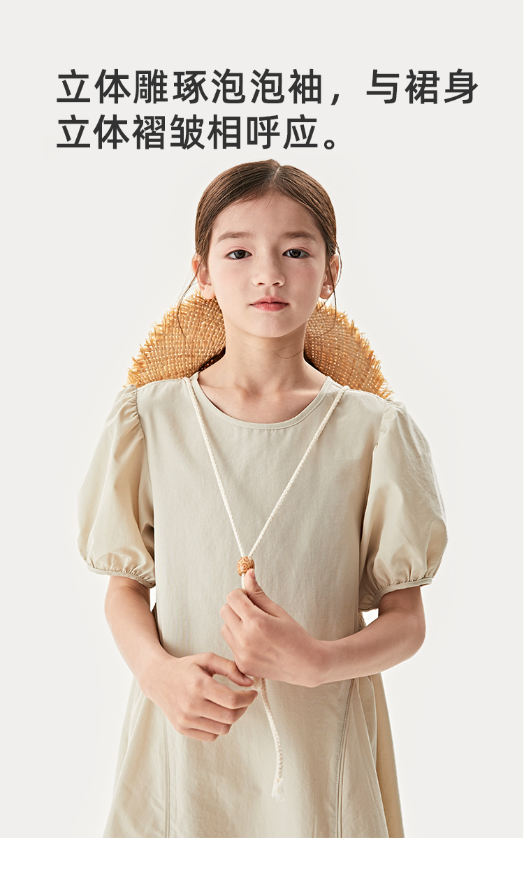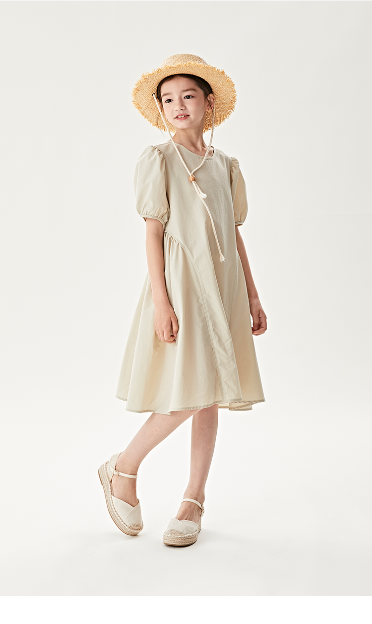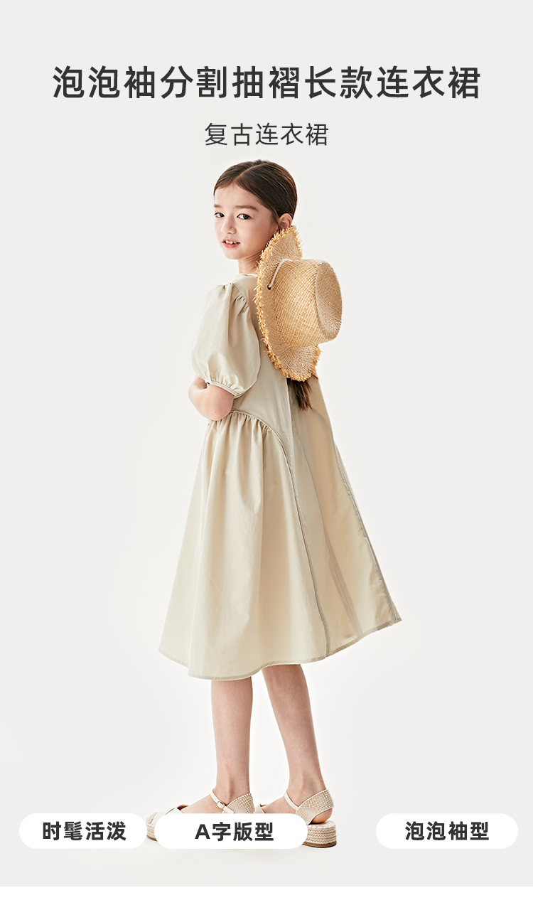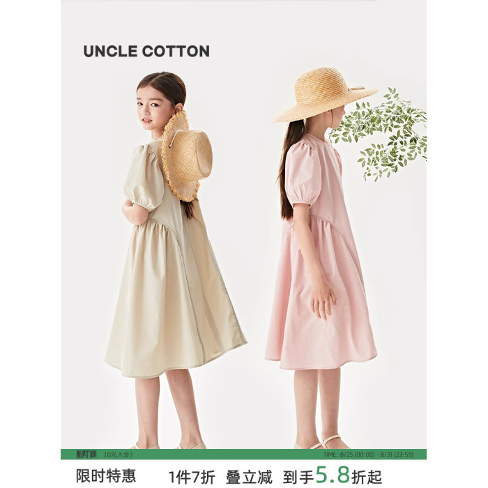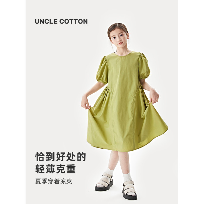 棉叔叔夏季女童連衣裙泡泡袖透氣輕薄空氣皺感肌理少女新款長裙子