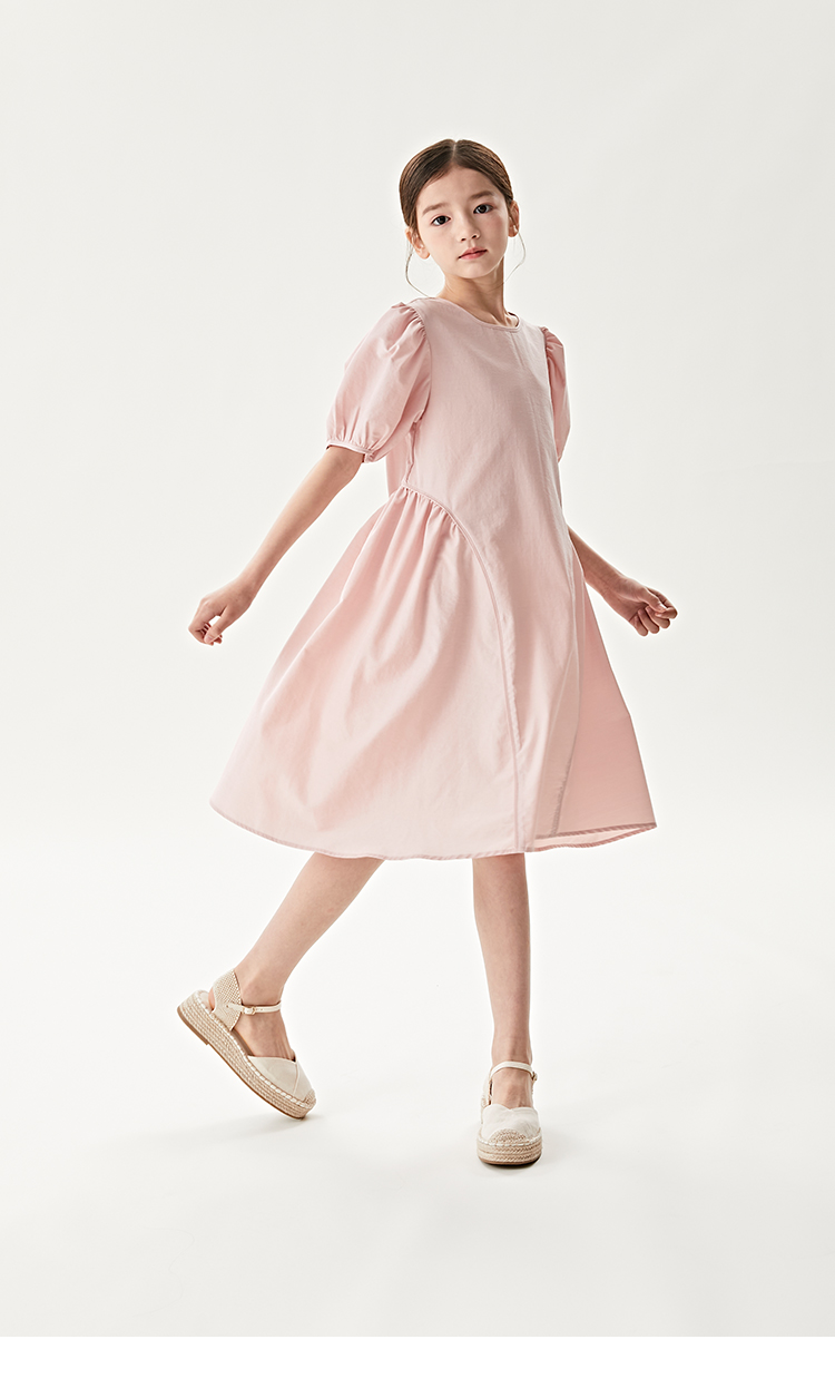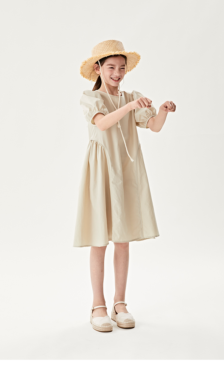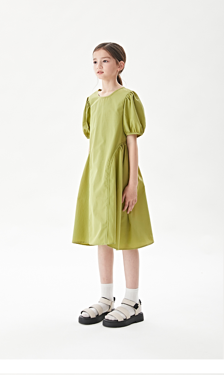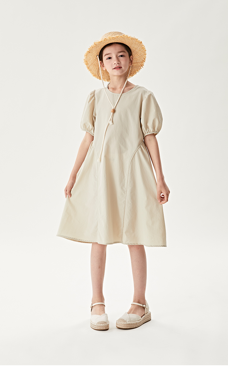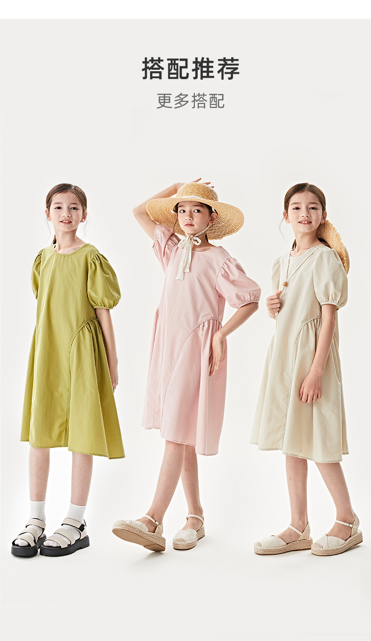 棉叔叔夏季女童連衣裙泡泡袖透氣輕薄空氣皺感肌理少女新款長裙子