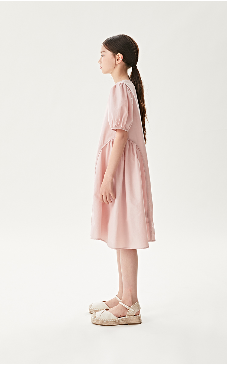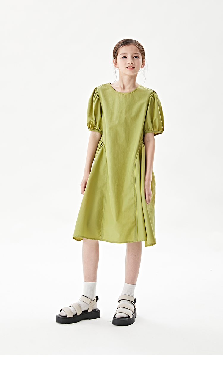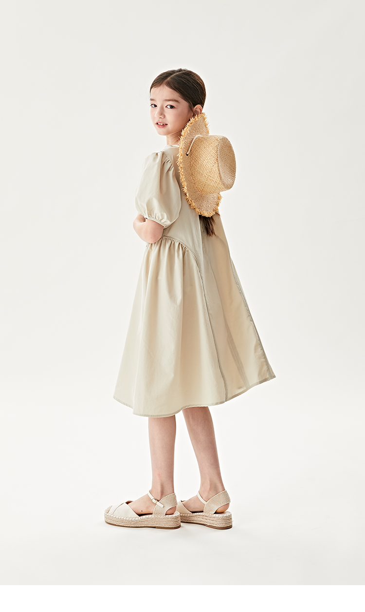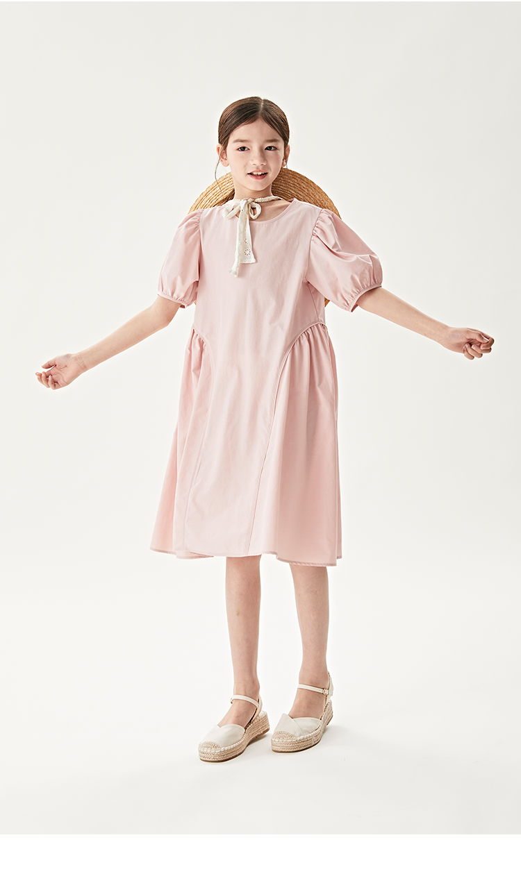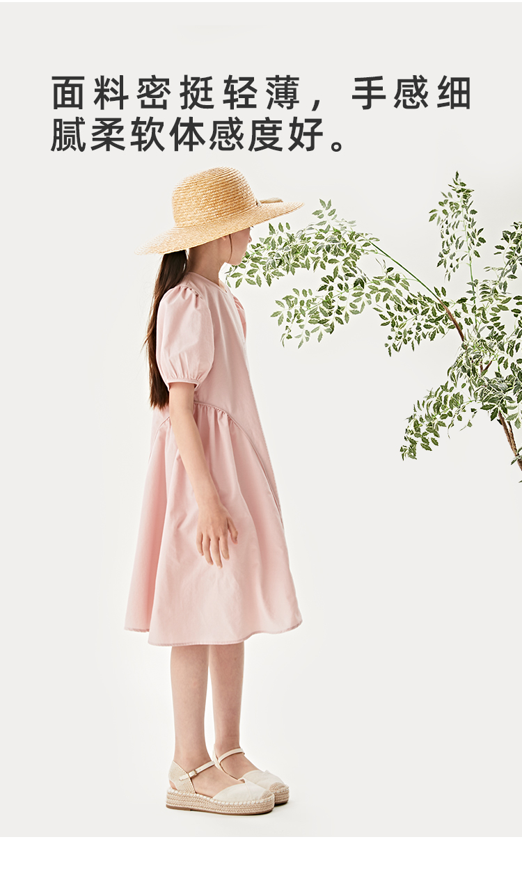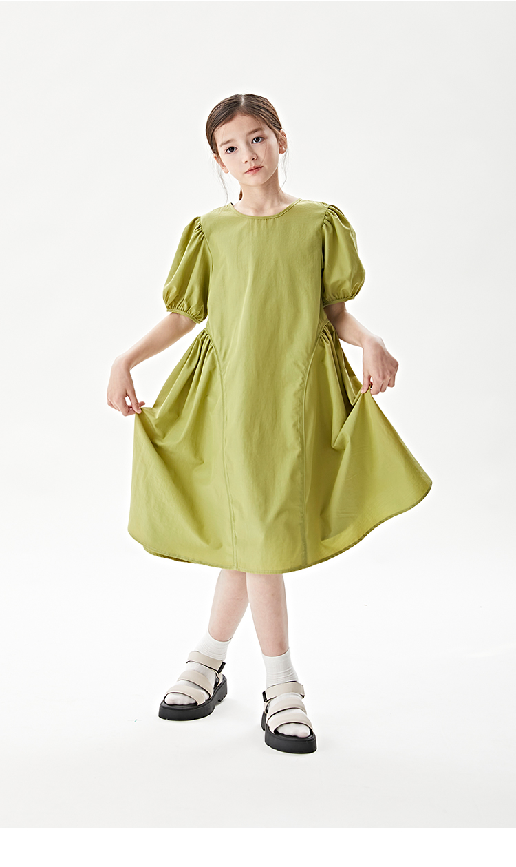 棉叔叔夏季女童連衣裙泡泡袖透氣輕薄空氣皺感肌理少女新款長裙子