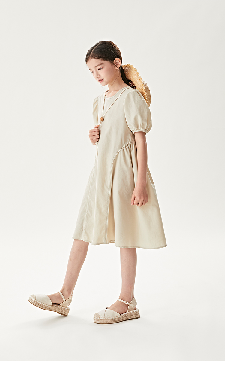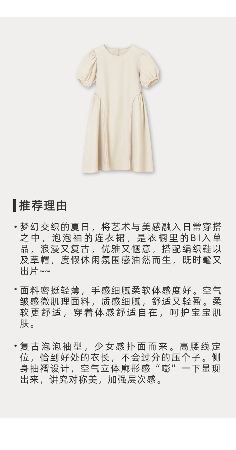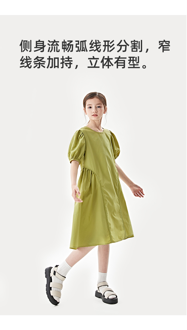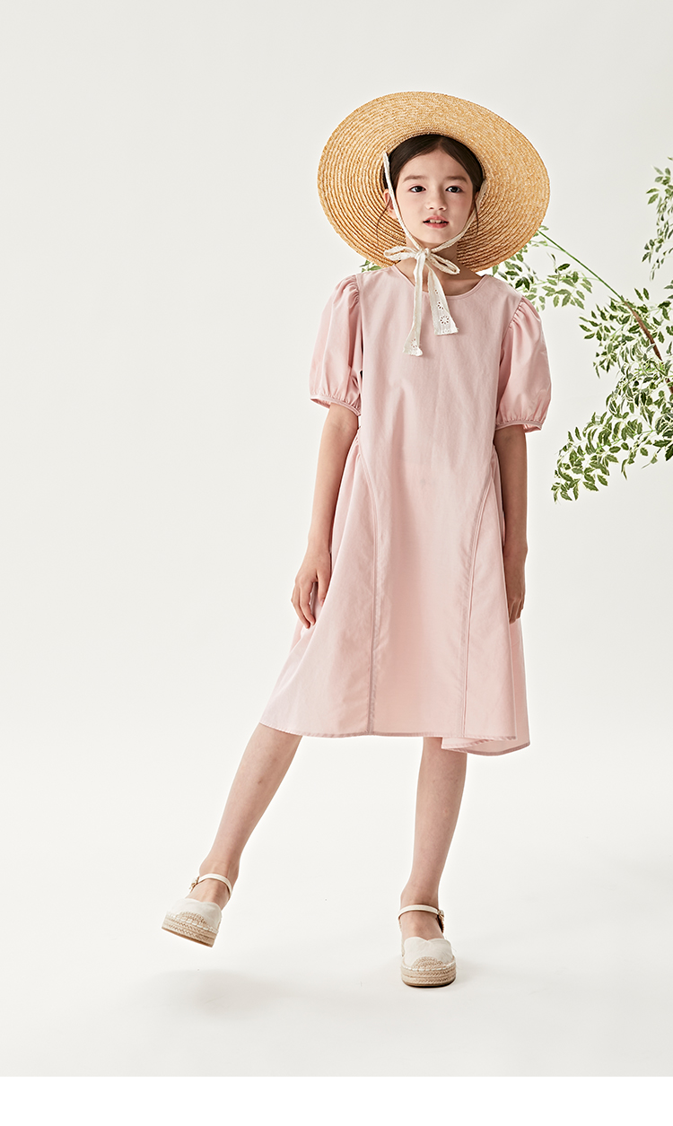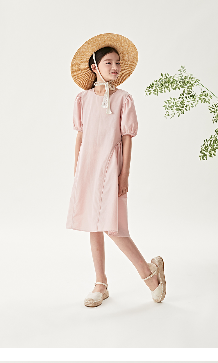 棉叔叔夏季女童連衣裙泡泡袖透氣輕薄空氣皺感肌理少女新款長裙子