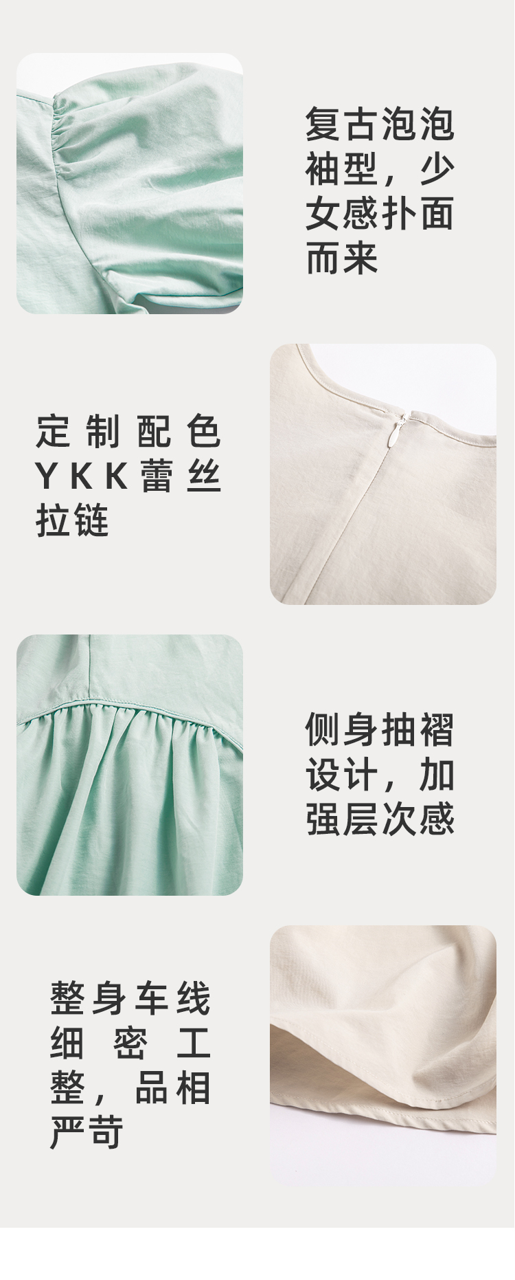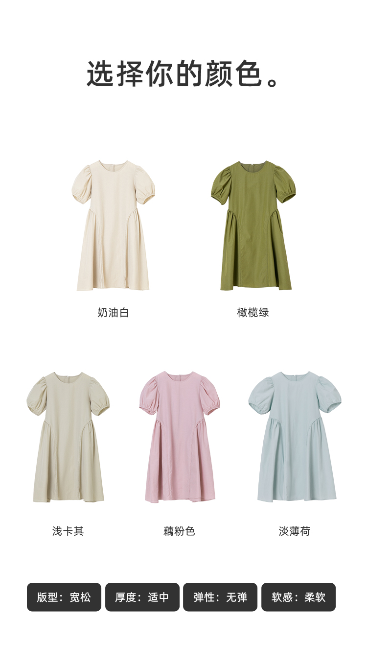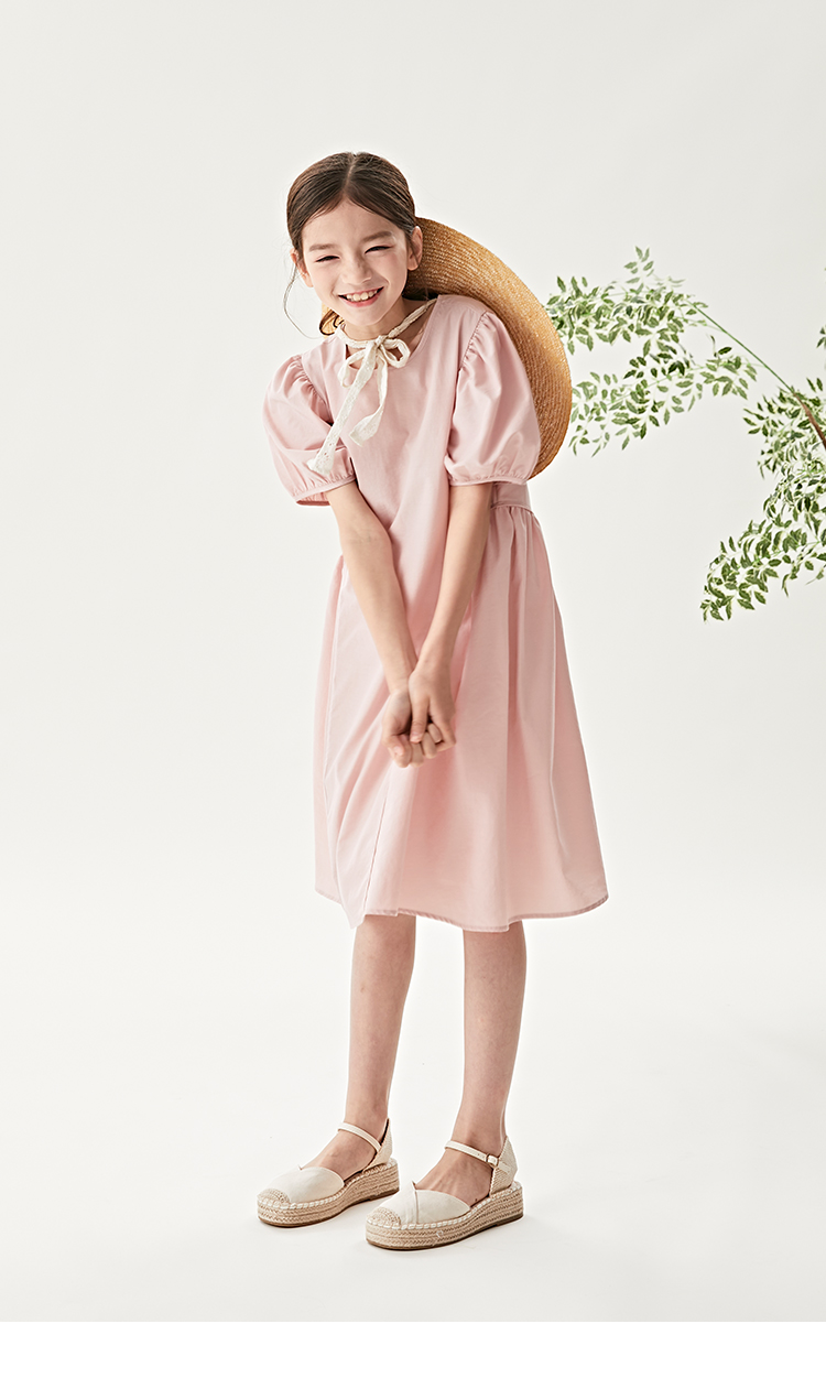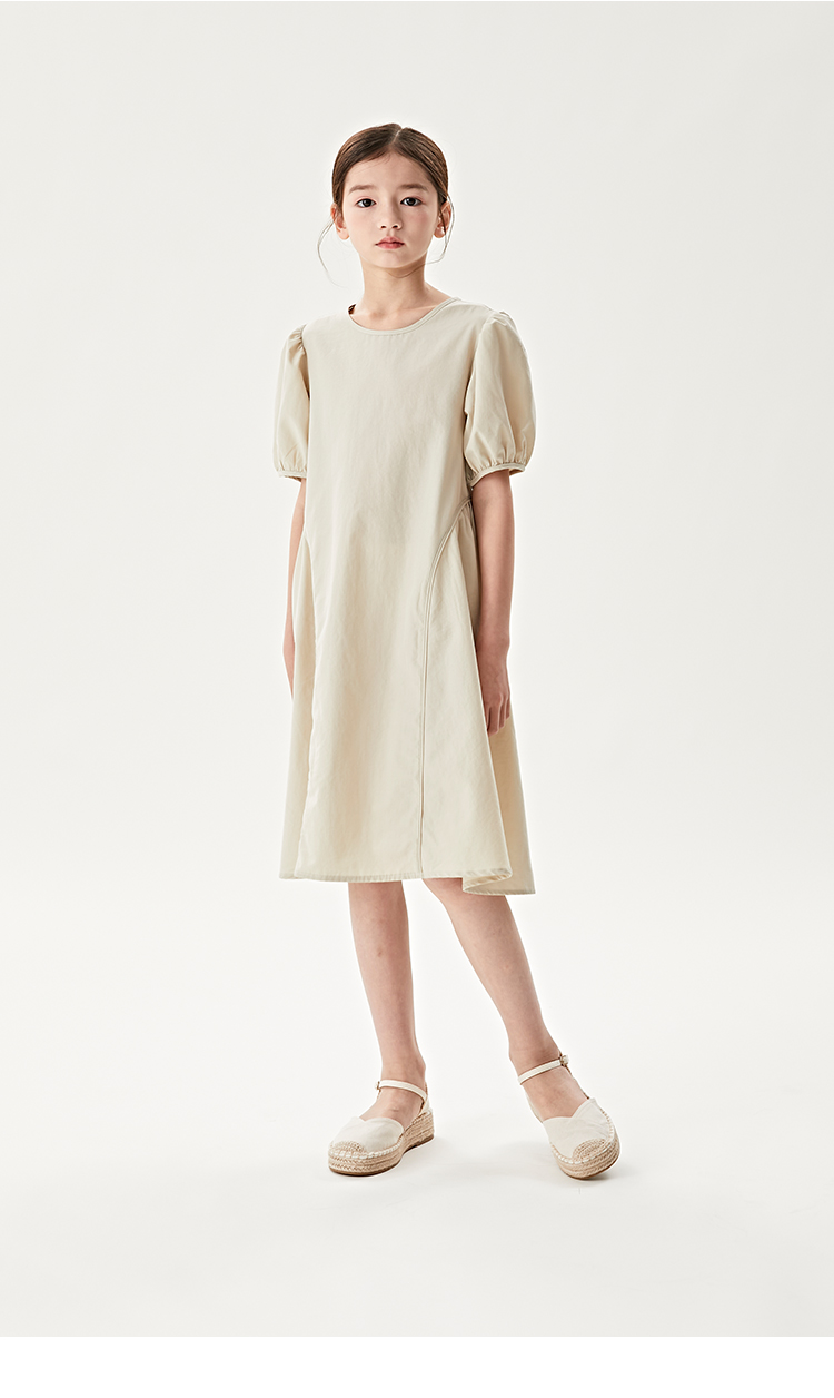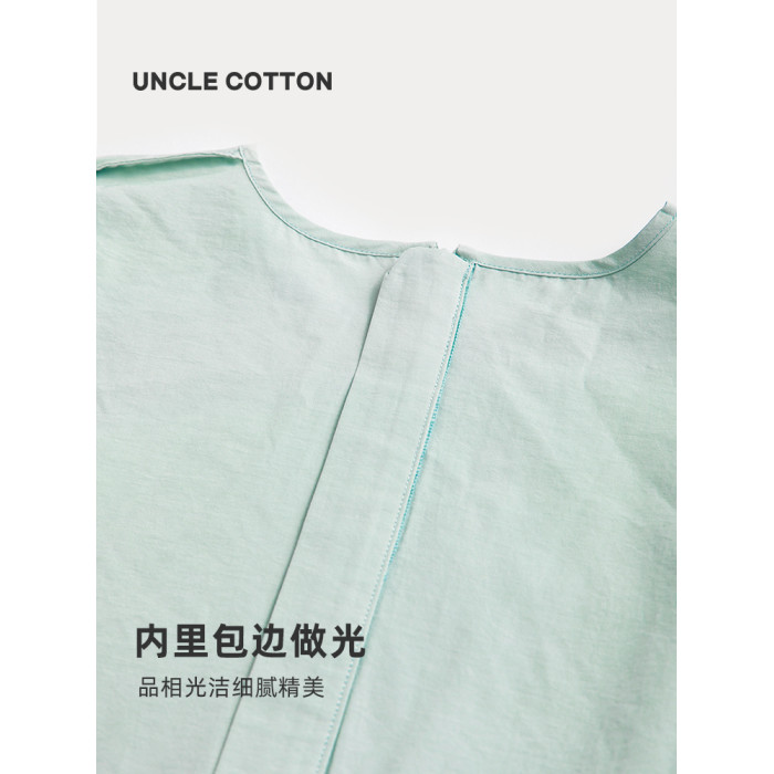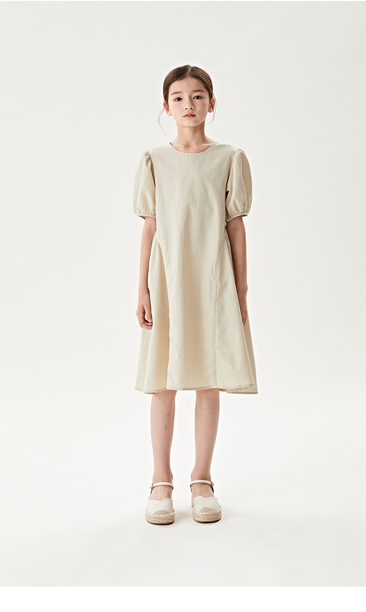棉叔叔夏季女童連衣裙泡泡袖透氣輕薄空氣皺感肌理少女新款長裙子