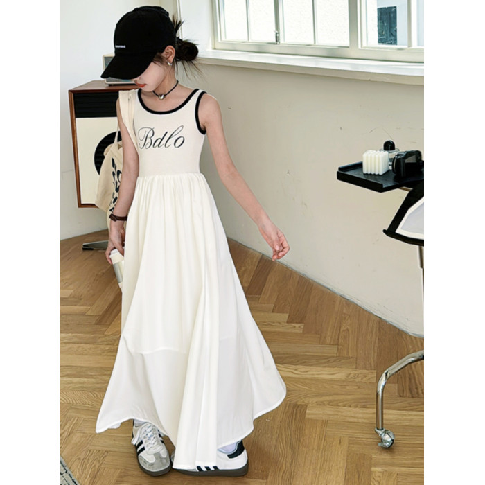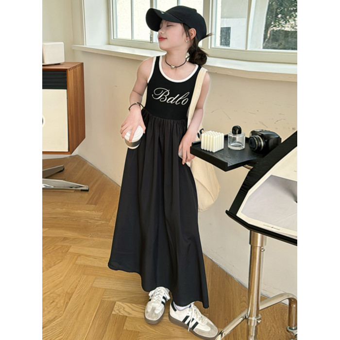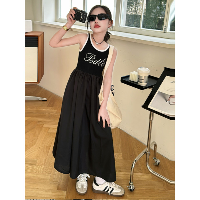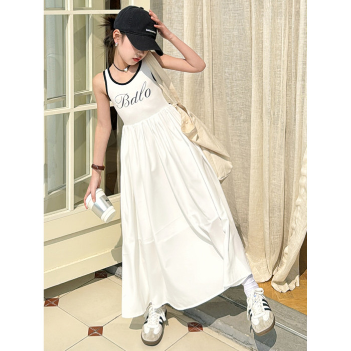女童背心連衣裙夏季2025新款中大兒童洋氣無袖吊帶裙小女孩長裙子