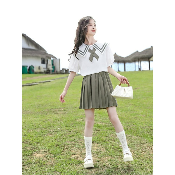 女童連衣裙洋氣夏裝2025新款女孩jk製服套裝夏款學院風裙子百褶裙