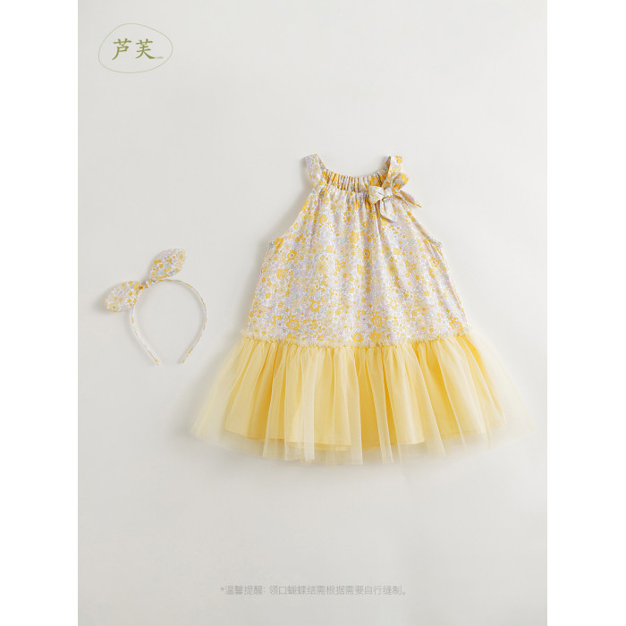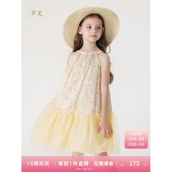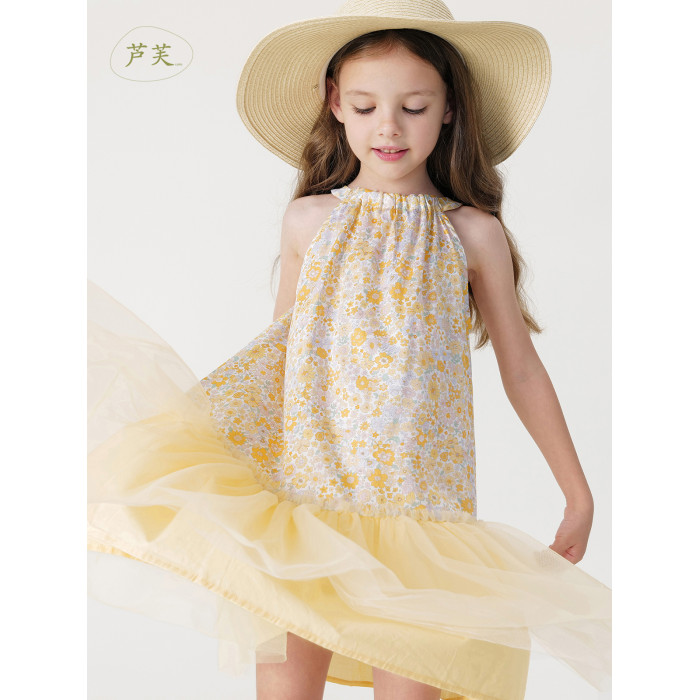 馬克珍妮法式優雅 女童盛夏繁花網紗公主裙吊帶裙夏裝新款250017