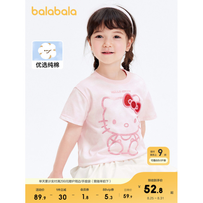 【HelloKitty IP】巴拉巴拉童裝兒童短袖女童夏純棉上衣t恤可愛