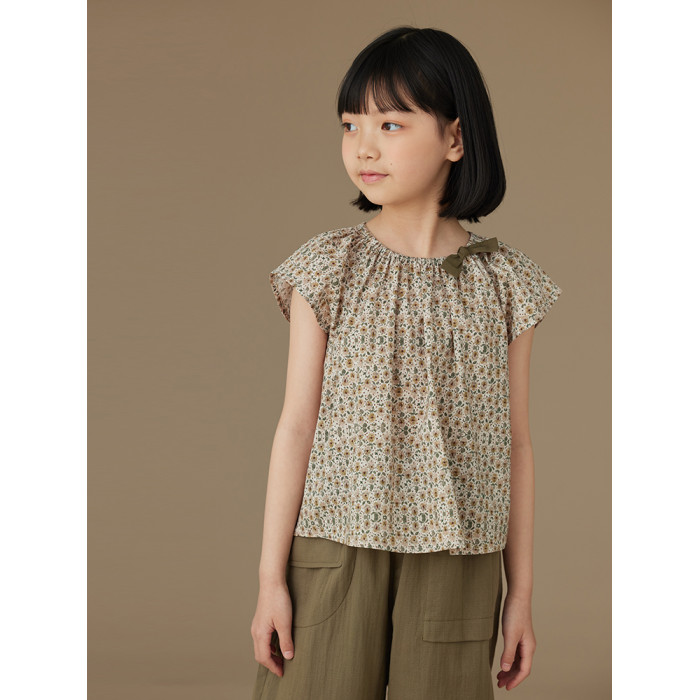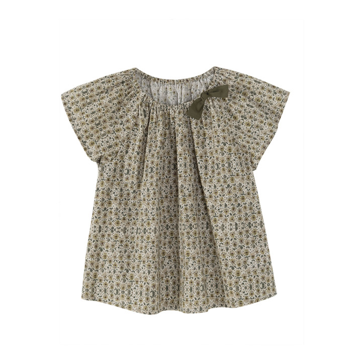 哈齒童裝2025春夏新品女童甜美可愛蝴蝶結純棉碎花小衫兒童上衣