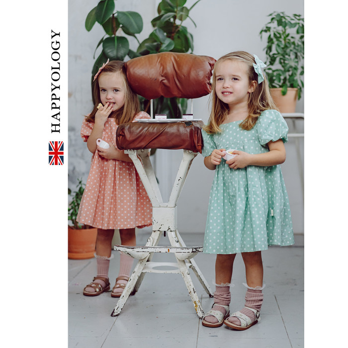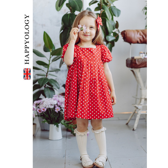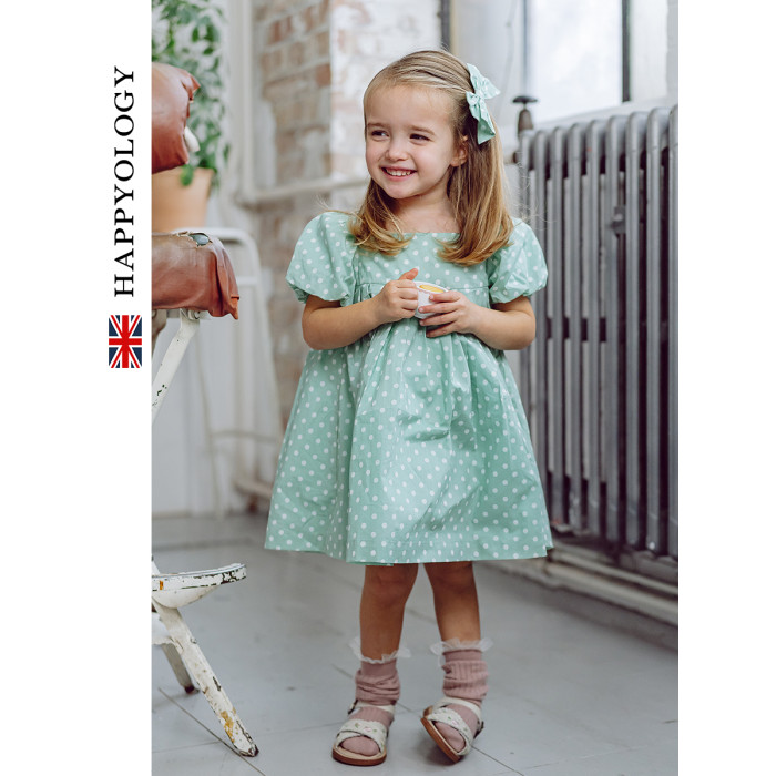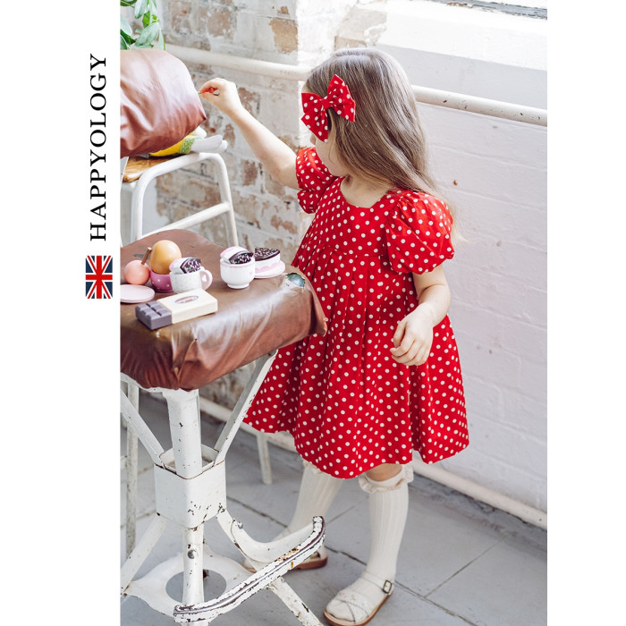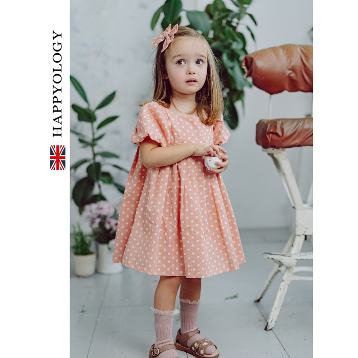 Happyology英國兒童波點泡泡袖連身裙女童新品春全棉可愛夏連衣裙
